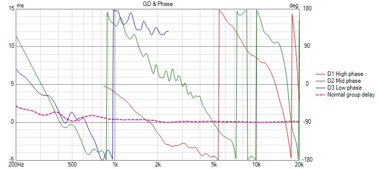 それで、ピンク点線は群遅延なのですが、これもそんなに悪くはないです。ただし。低域方向はたぶん酷いことになるでしょう。バスレフですからねこれは。