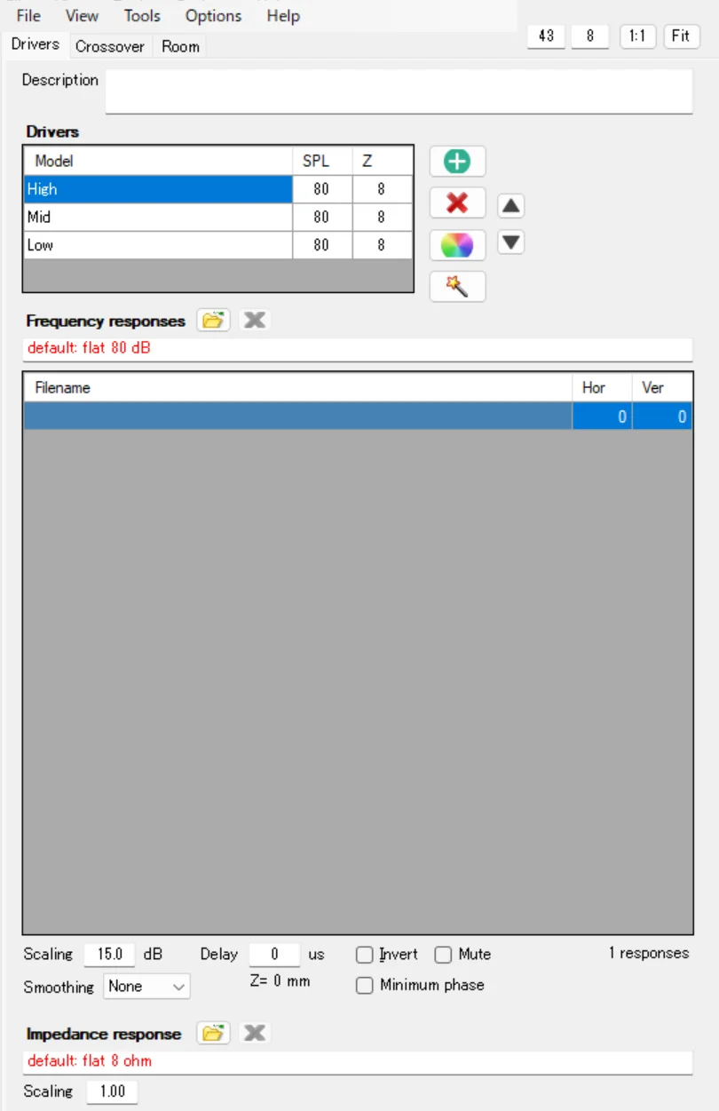 さて、トゥイーターの調整例を見てきましたが、ミッドドライバとーファーに対しても全く同じことをやっていきます。
