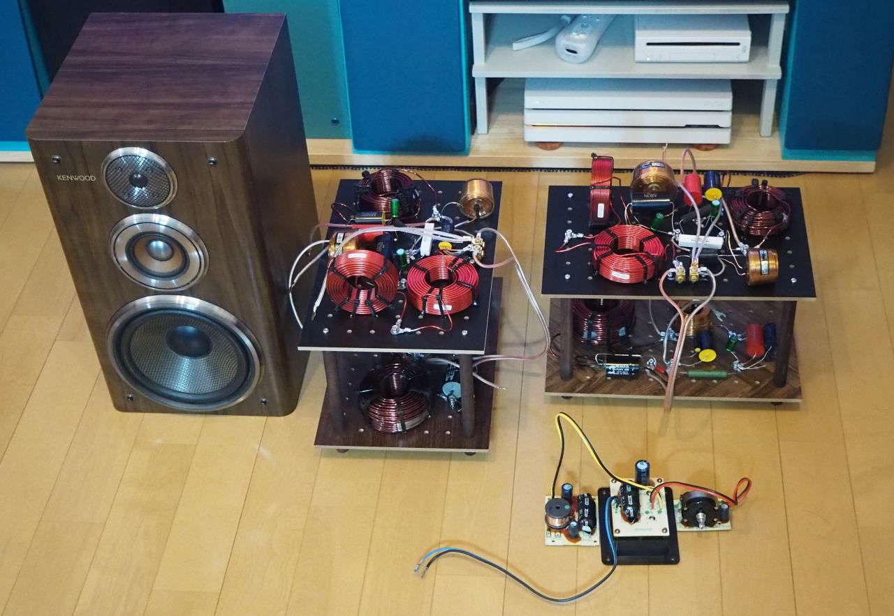 このパッシヴクロスオーバーが箱の中には収まらない事はお察し頂けたと思います。どういうスペースファクターだ。邪魔くさいことこの上無いです。KENWOODの中にこれが収まると想像するからおかしいのであって、ハイエンドスピーカーのパッシヴクロスはこれと同等か又はこれよりずっと大規模のものも多いのです。(というのは過去の投稿で散々ご紹介してきました)