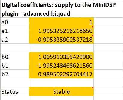 をダウンロードし、必要数値を入力するだけ。これだけで、必要な a0, a1, a2, b0, b1, b2が算定されます。