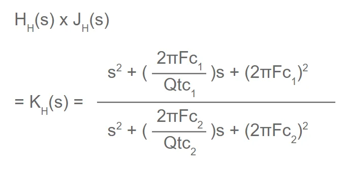 上式を見ると、分母分子ともにsについての二次式となっています。このような関数のフィルターは Bi-quad fileter (双二次フィルタ)と呼ばれます。Bi-quadフィルターは、ハイパス、ローパスフィルタをはじめとして、バンドパス、シェルビング(シェルフ)、ピーキング、ノッチ、オールパスまで、さまざまなIIRフィルタを形成することができます。そして、上式が示すように、LTもBi-Quadで実装できることが判ります。
