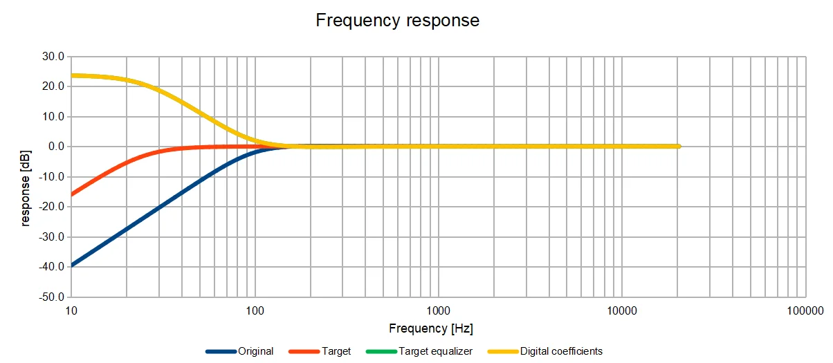 ただし、このお手軽さによってアナログドメインのLTや私のオプティマイザの価値が落ちることはありません。LTはどんなスピーカー、どんなアンプでもやって良い行為ではないです。系に色々と厳しいレギュレーションを要求されるのですが、回路のヘッドルームもそのひとつです。ご覧のとおり補償カーヴが+20dBを越えており、ディジタルドメインでこれをしてしまうとヘッドルームが奪われ/ダイナミックレンジに制約が出ます。その点だけに着目すれば、相変わらずアナログ回路にも存在意義があるわけです。最初から自力に余裕のある超大型システムで、補償ゲインが+12dB以内であった場合は、ディジタルでやった方が優勢かも知れないです。