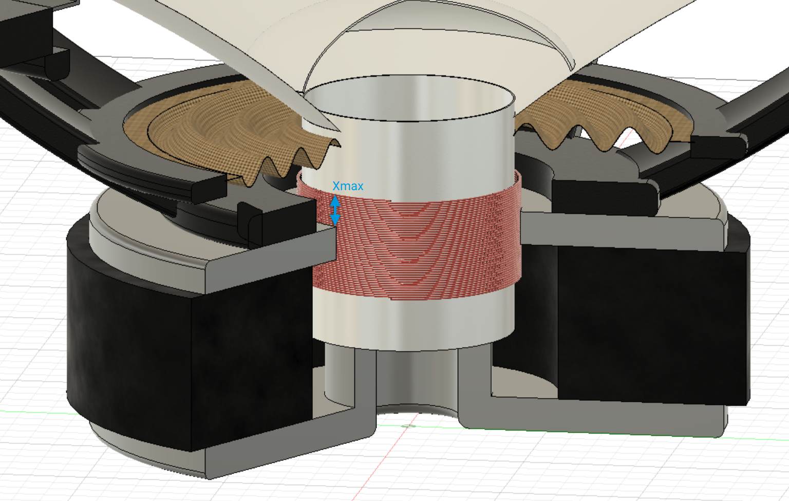 LTに用いるウーファーは、FsやQtsが低いことももちろん要件ですが、それ以上に大切なのがLiner Excursion widthの大きさです。つまりココ、Xmaxですね。