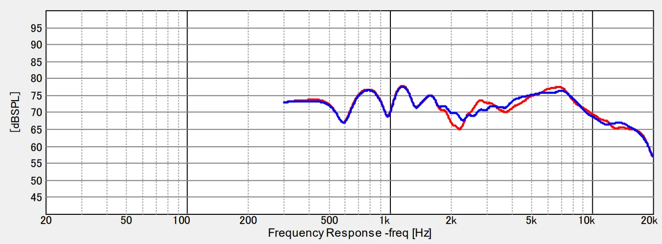 時間窓5msと無限長のBlendedなので、疑似無響相当なのは400Hz付近まで。1/12th oct.のスムージングを掛けています。ね、凄くありません?この測定再現性。きちんとアライメントして同一条件で測定すれば、きっちりアーティファクトの除去ができて、何度測ろうが同じような測定結果になるのです。