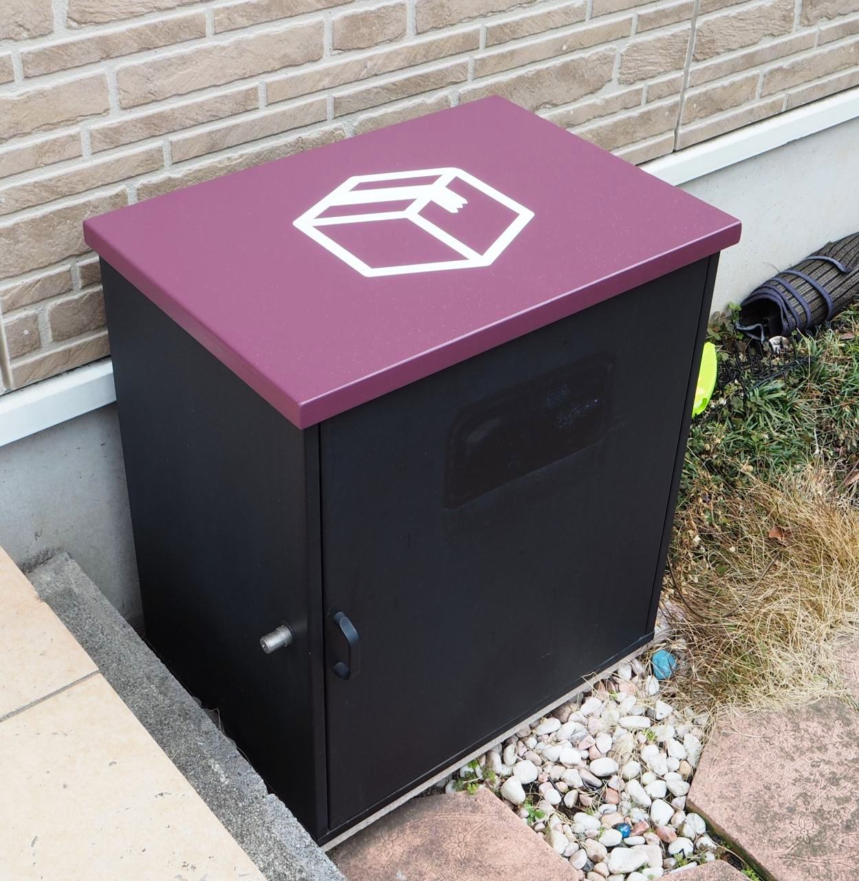 黎明期に買った宅配ボックスだから安っぽいですが、カバーを被せると1ランクグレードアップ感(笑)