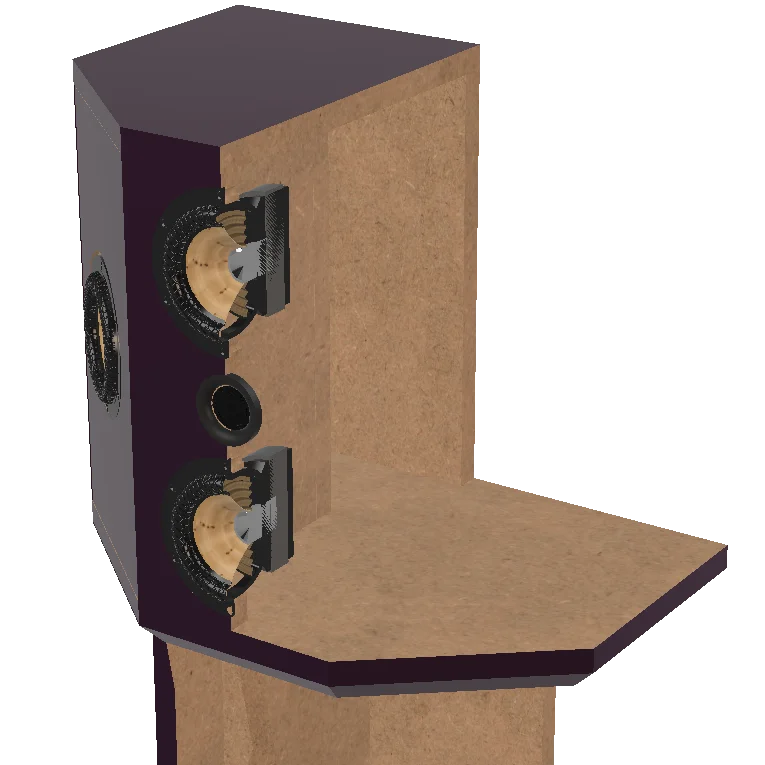 支柱部分には、18Hzまでフラット再生できる6th Orderのサブウーファーを仕込みます。