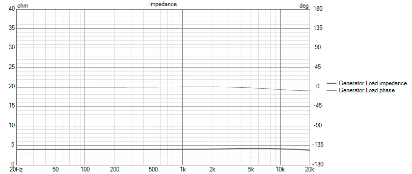 片側のアンプ側からみた、負荷インピーダンス模擬です(グラフはドライバが直線インピーダンスの場合ね)。だいたい4Ω内外に収まりそうですが、ここは実測して検証する必要があります。