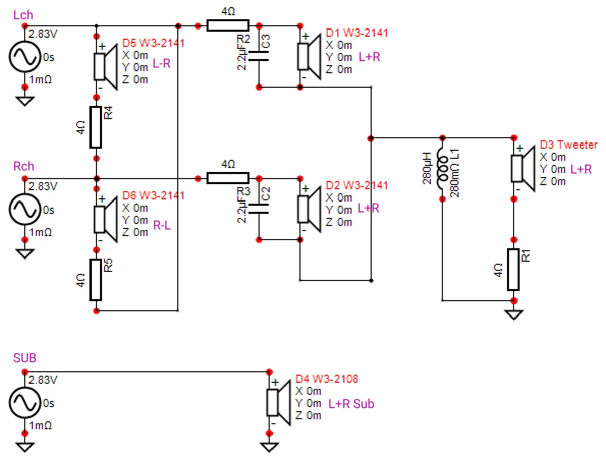 計算上のクロスオーバーは3~5kHz内外に来そうなのですが、なにせ4本のフルレンジ全ての中高域が干渉するので、最終的にどうなるか蓋を開けるまで判りません。