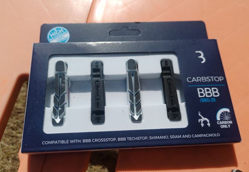 使ってるのはコレ。CARBSTOPのBBBというやつ。良し悪しもなにも、コレしか知らないのです。止まるから、まあいっか。