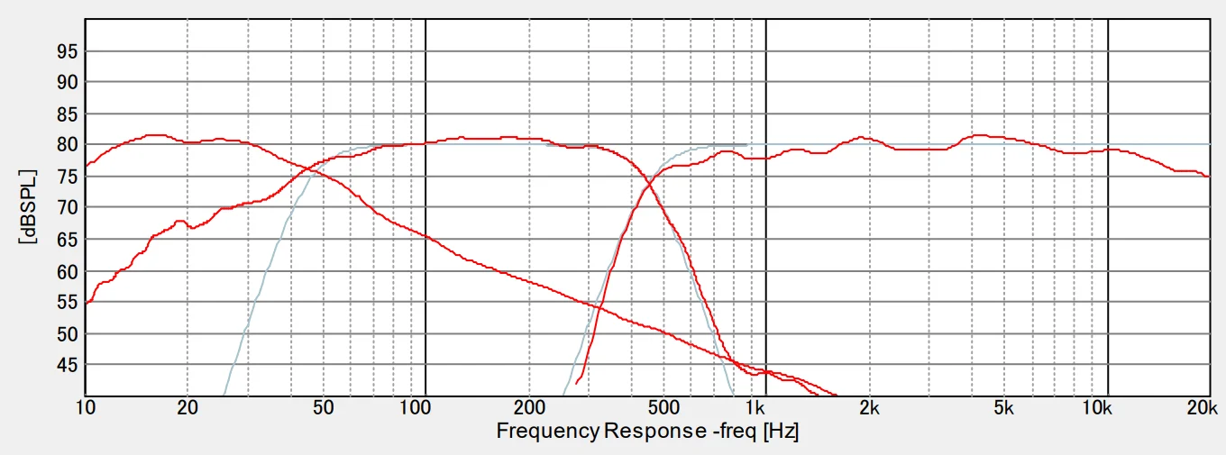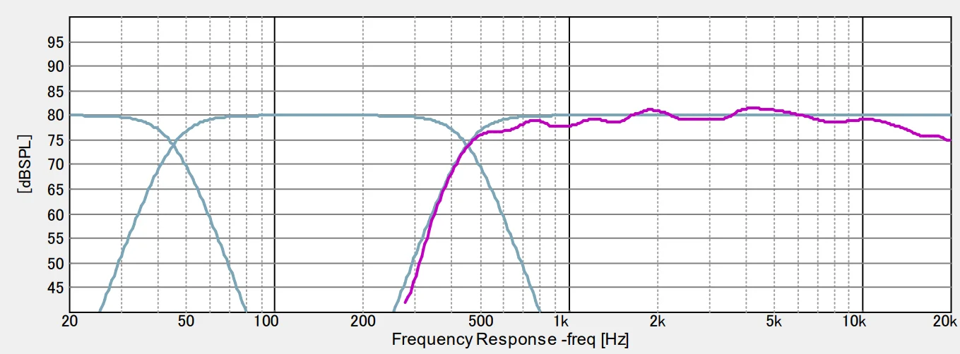 SuperLow – MidBass感は聴感で検証して、緩やかなスロープでつなげることにしました。(-12/Octくらいかな)