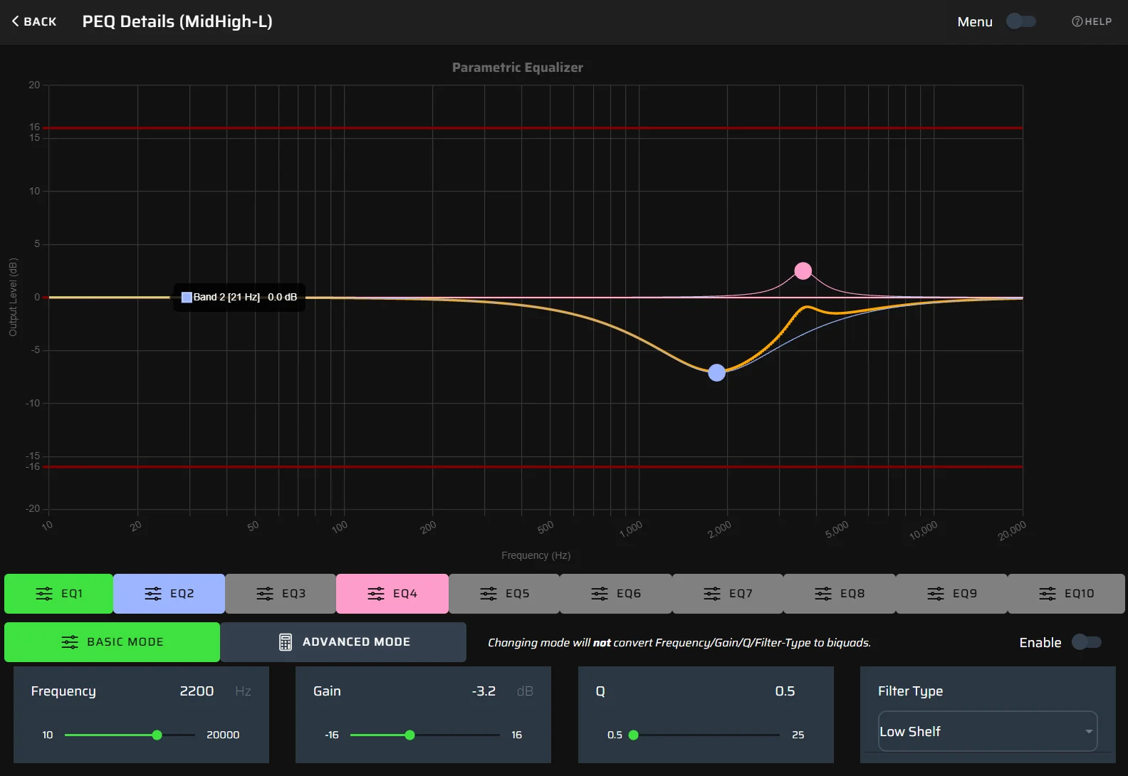 もともとミッドハイに適用されていたPEQがどんどん外されていきます。