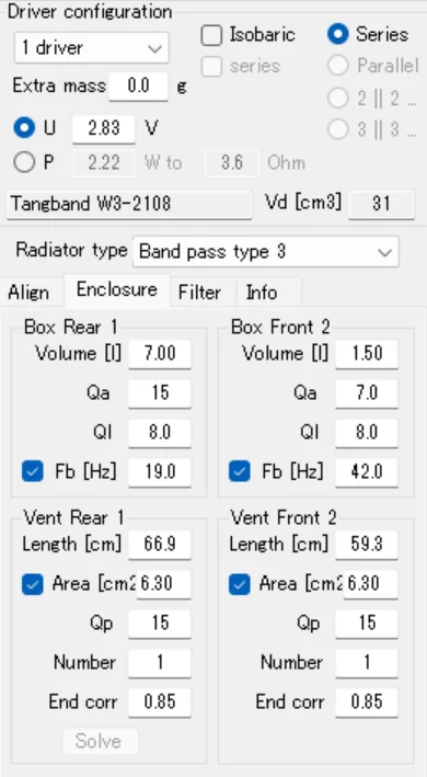 これはVituixCADの中でいうとBand pass type 3 という設定になります。