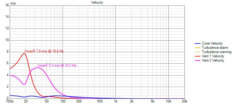 ここの速度が上がれば上がるほど、ポート境界でのノイズが出やすくなり、反射回折による歪も出やすくなります。この速度上昇を防ぐには、ポート開口直径を大きくすれば回避できます。ポート開口は大きくても小さくても特性にほとんど差が出ず、ほとんどこのベロシティへの影響といえるので、ポートノイズや反射の影響を避けたいがために、ポートを太くしているというのが各ベンダーの実情です。