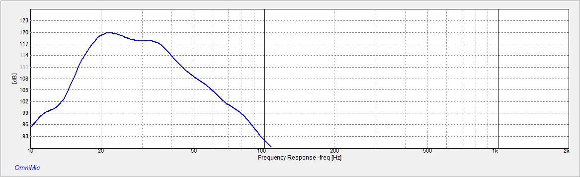 このUltimate Micro Subは、ほんの数リッターという小箱でありながら、18Hz-19Hzがマトモに再生できてしまうという、音圧だけなら世界的にも類例を見ないオニ特性を誇っていますが: