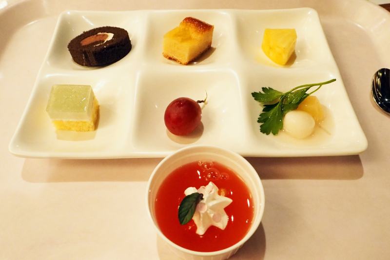 この手のバイキングって甘苦しくて食べられたもんではないのですが、ココのは甘さ控えめで、中にはかなり美味しいものもあり、大満足です。