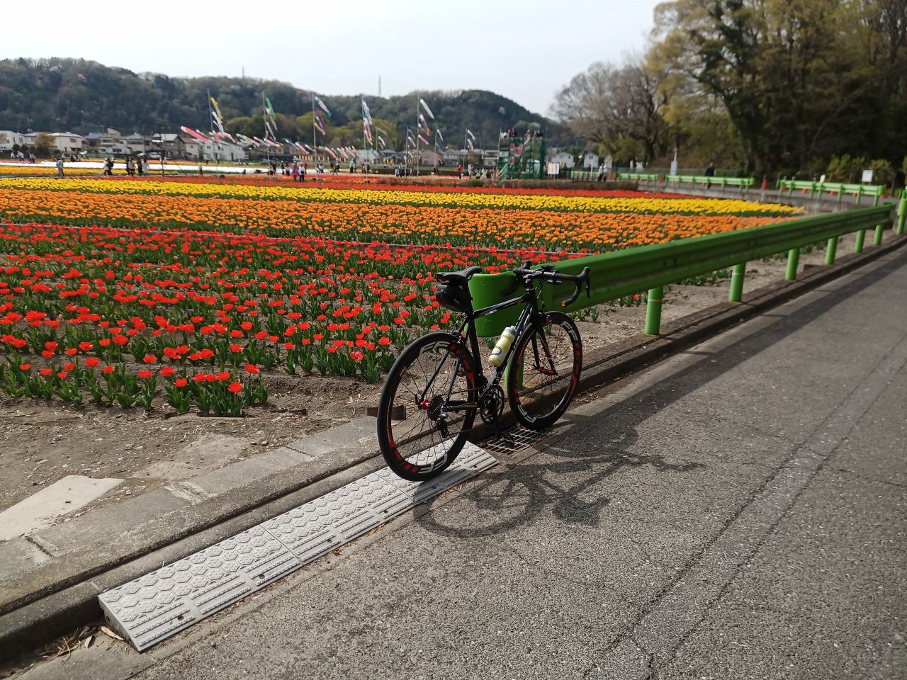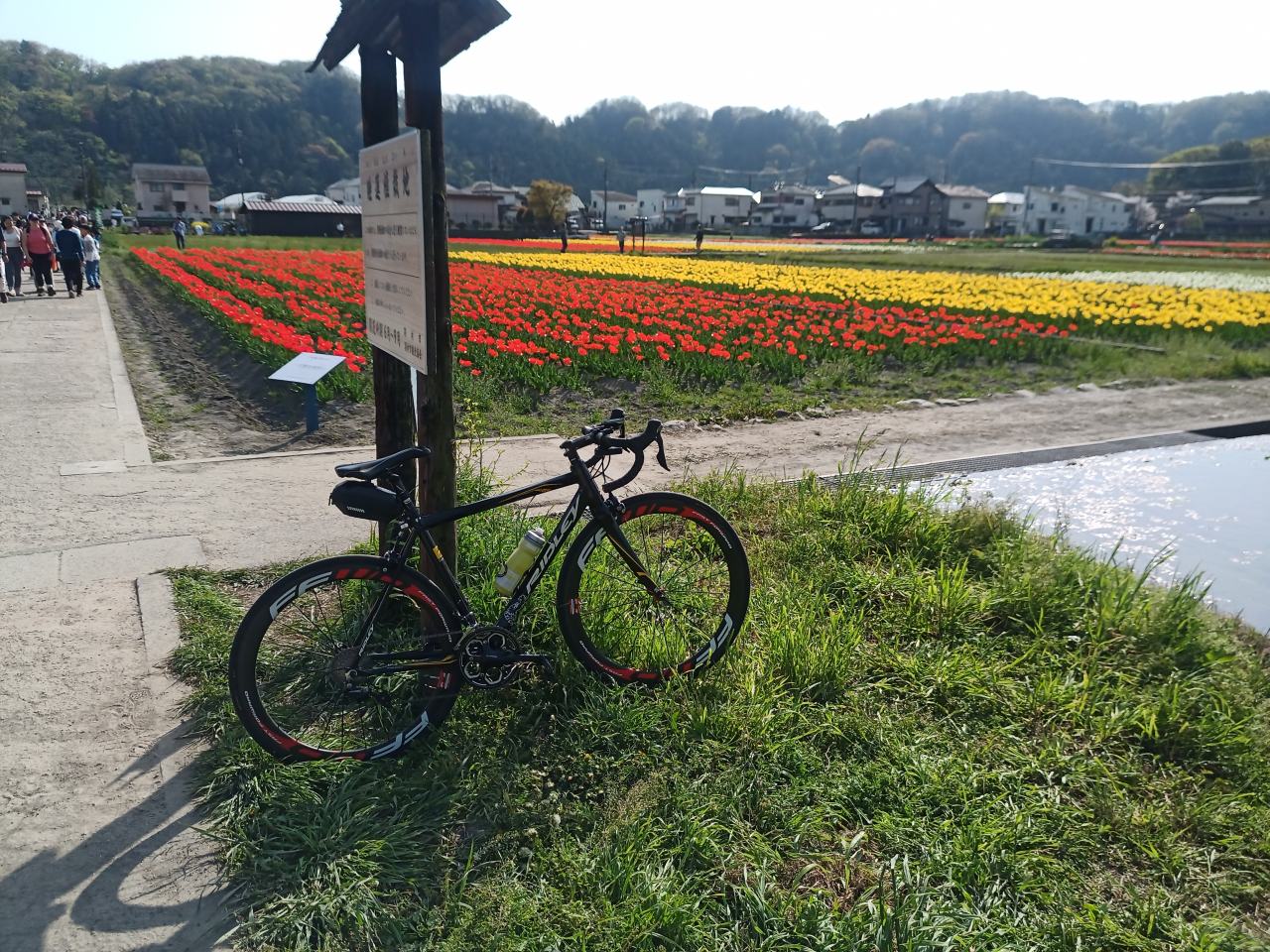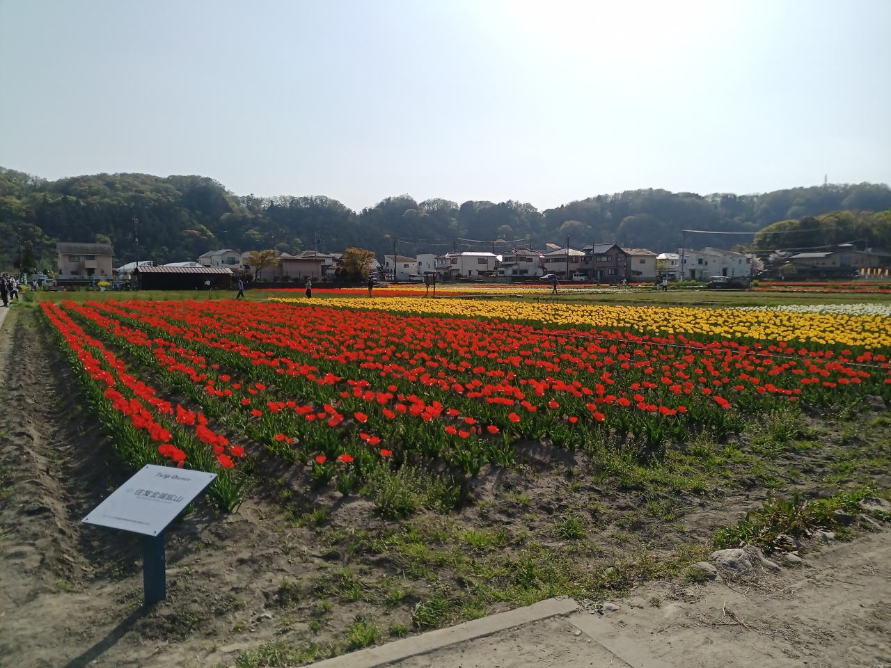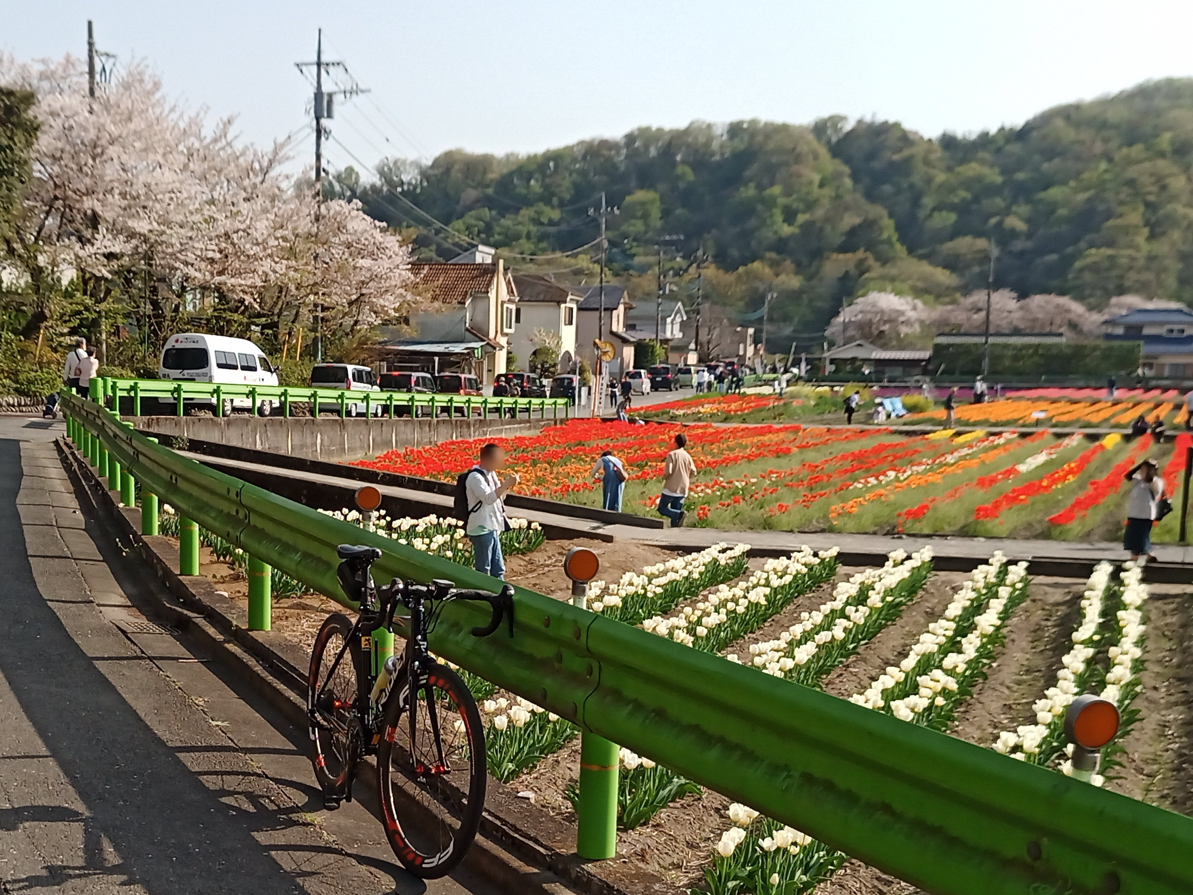 そうだ、サクラとチューリップのツーショット撮ろう!と思い立ち。やや迂回してチューリップ畑に向かいました。