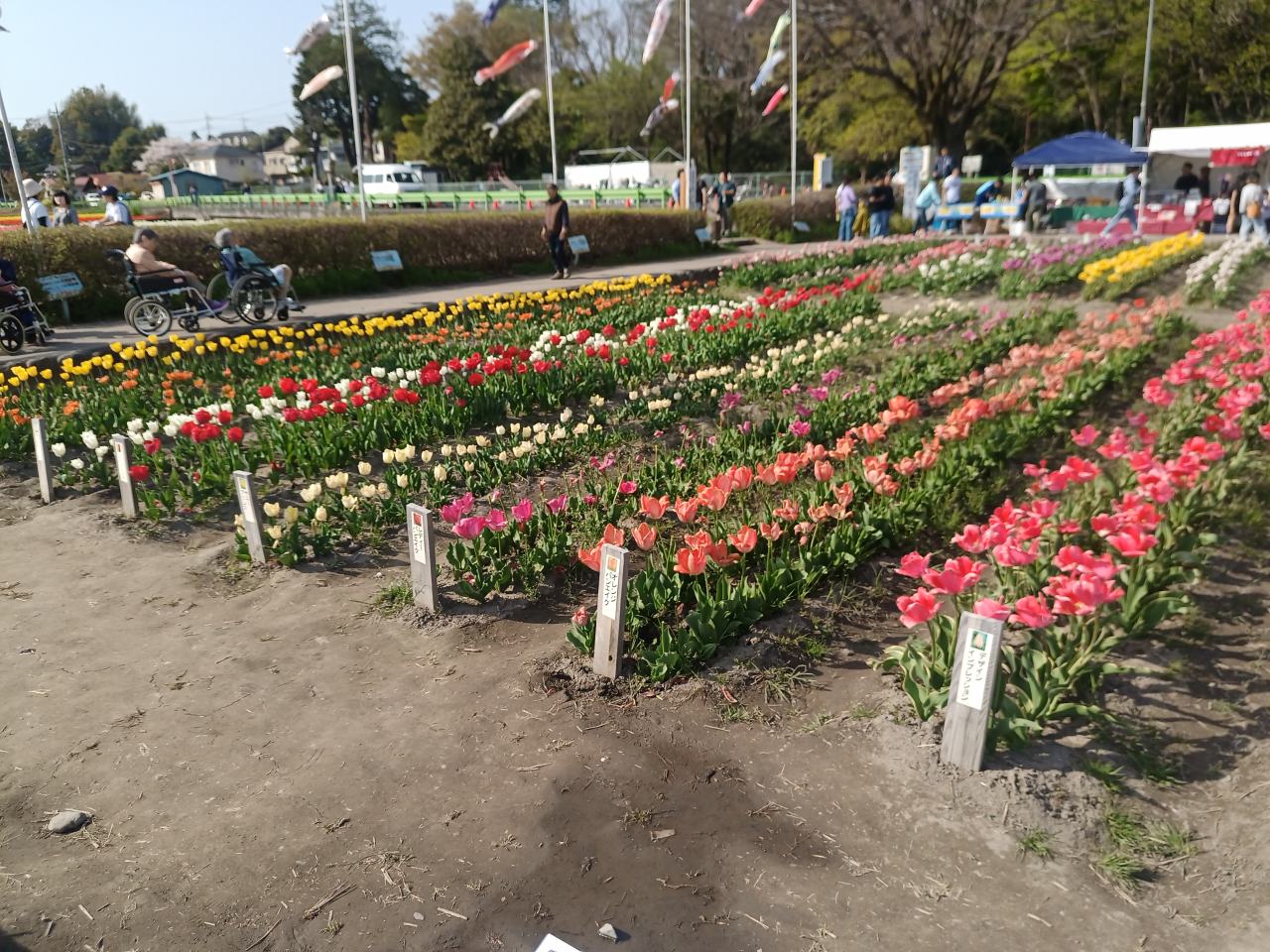 別にお花が大好きってタチでもないのですが、綺麗な写真が撮れるので、ついつい毎年来てしまいますね。子供がちっさい頃は毎年連れてきていました。羽村といえばチューリップなのです。