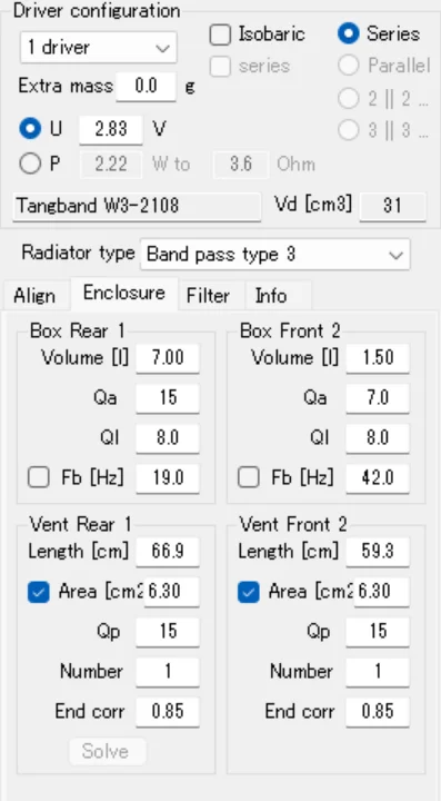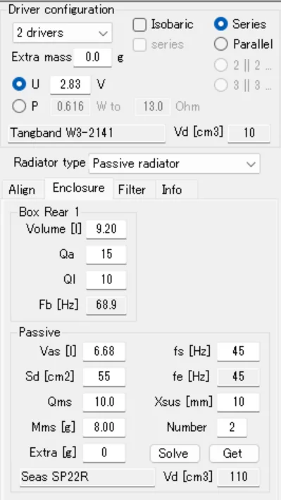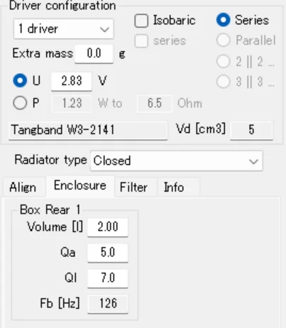 特性が整ったので、この設計を実際のエンクロージャー設計に転化してゆきます。