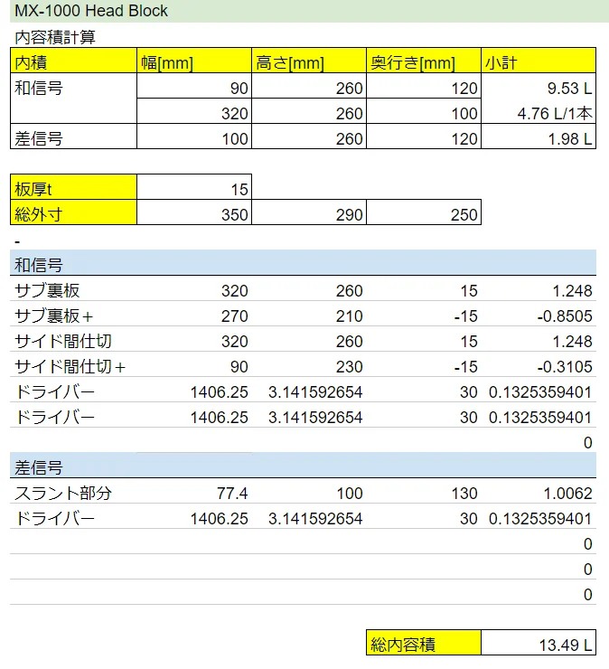 容量計算/調整をしていたときのスプレッドシートがこちら。