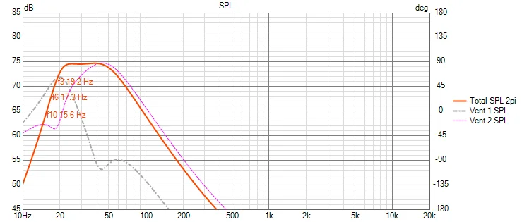 これは6th Order Bandpassと呼ばれる形式で、ドライバー前面と後面を異なるエンクロージャー、異なるポートで覆い、合成するという形式です。
