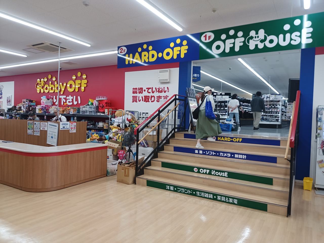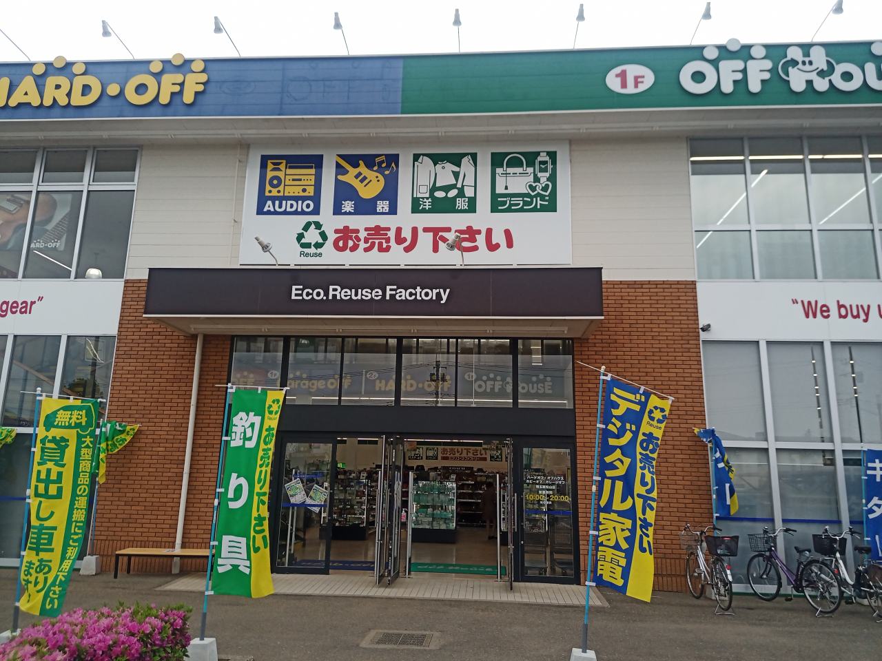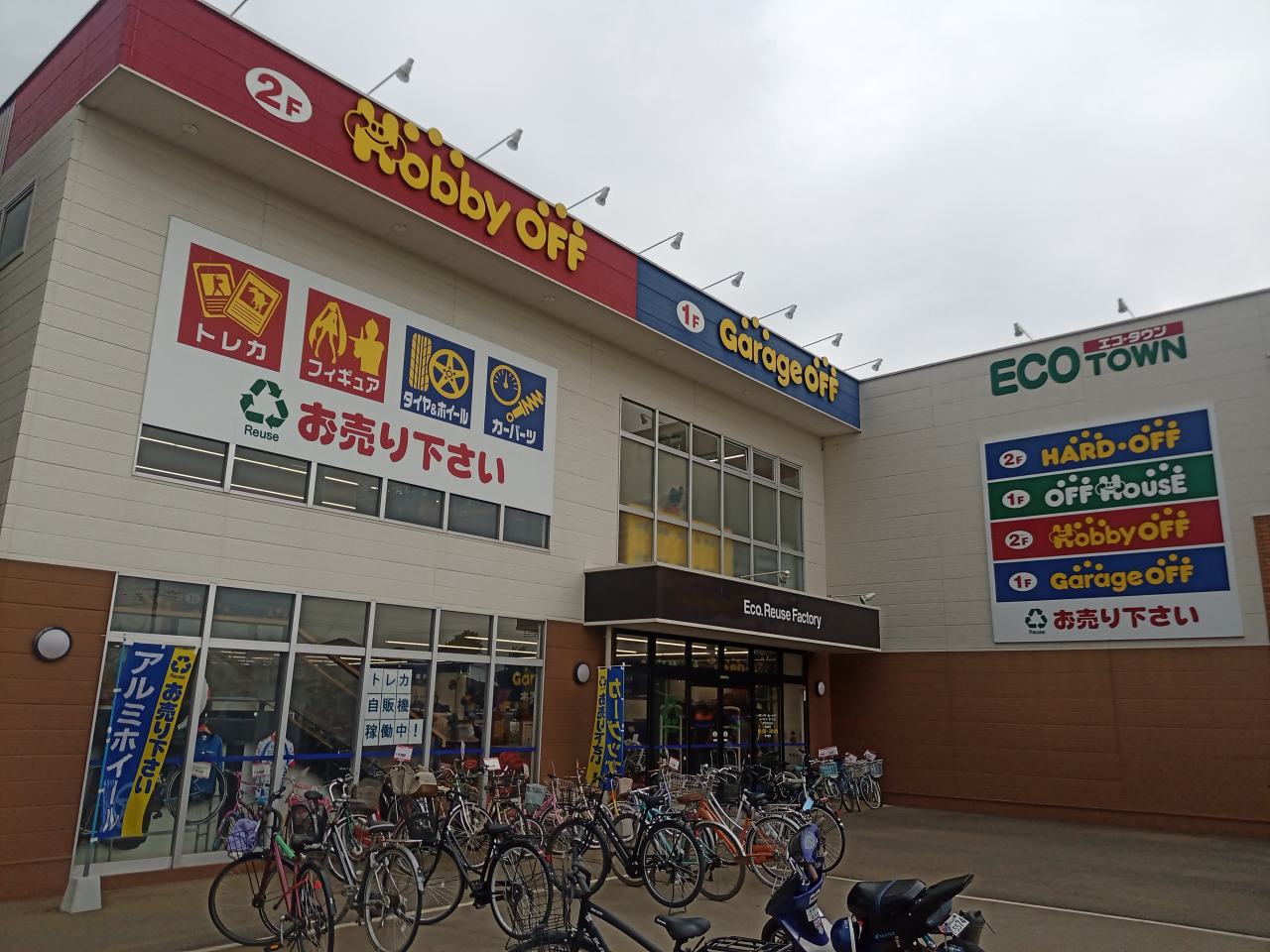 隣は1Fがガレージオフとオフハウス、2Fがハードオフとホビーオフという構成になっています。言ってみれば、計5店舗が入っているという大型構成になります。