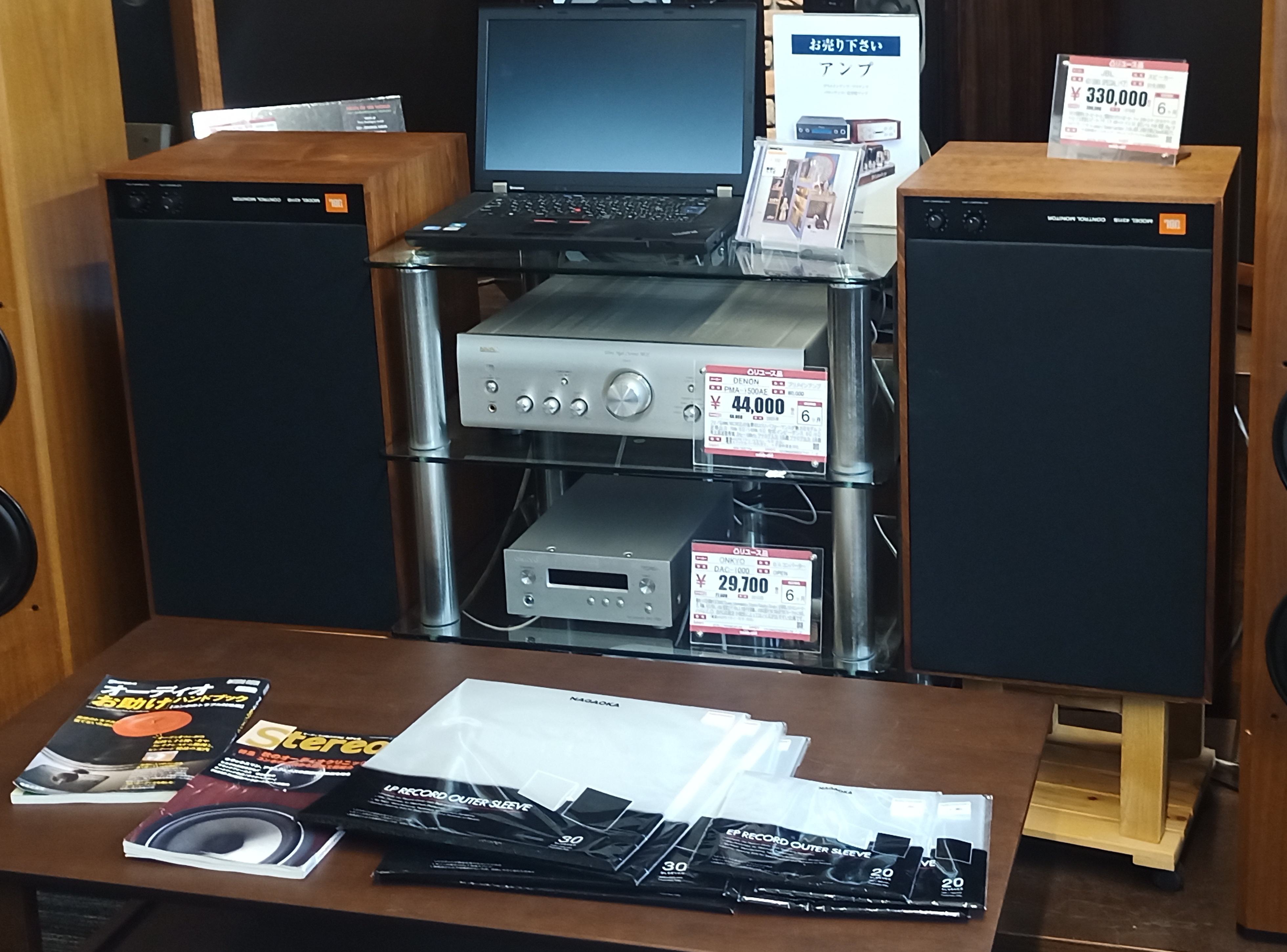 まあ、ポン置きで何の愛情も無しにただ鳴らされてるだけの音。当然かもしれません。途中でスタッフさんが現れたんで、他のスピーカーを聴かせてもらいましたが、JBLとは違う意味でまた酷い音でした。