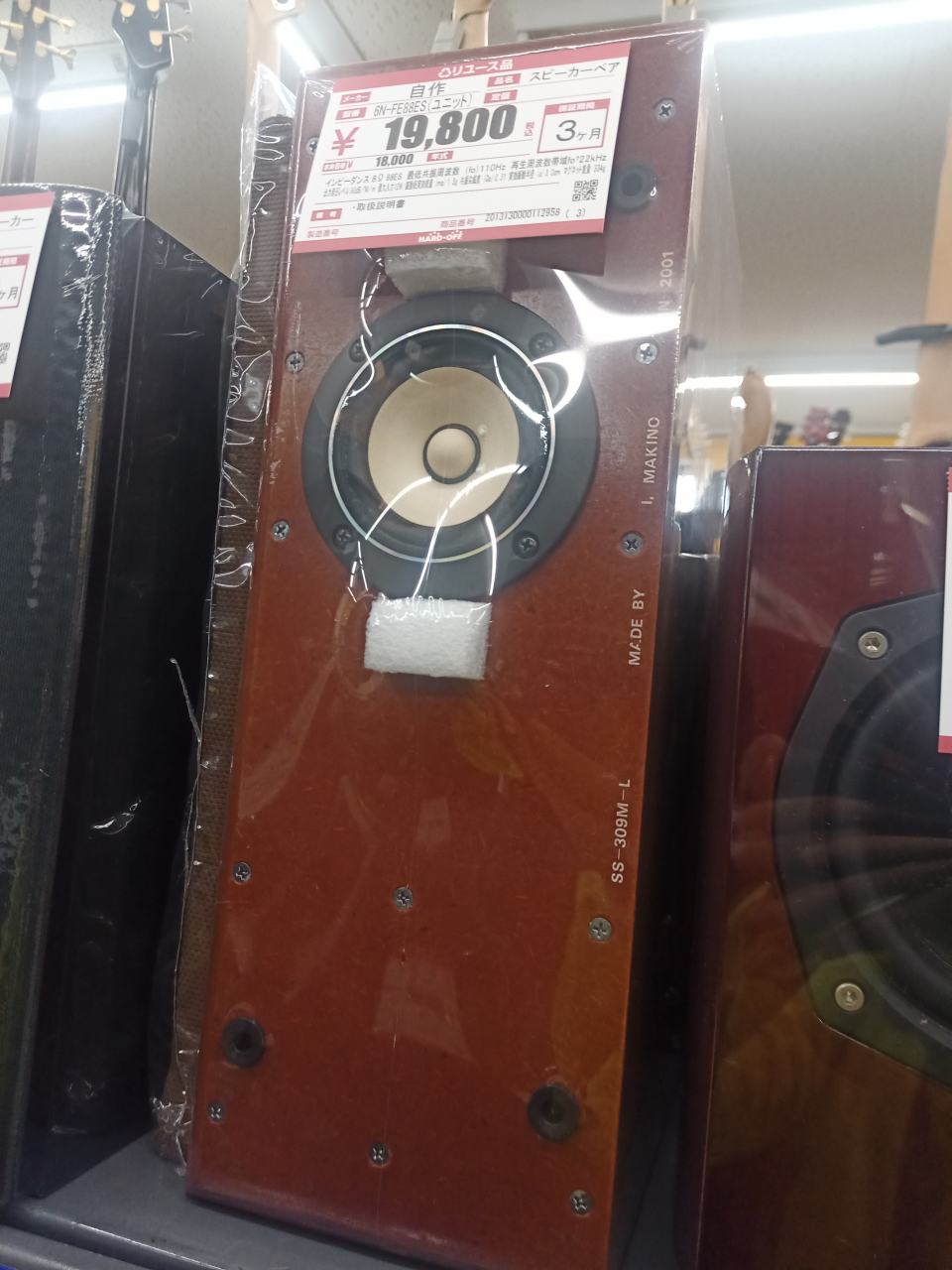 自作スピーカーでこのお値段。自作にしてはわりかしキレイに仕上がってます。が、バッフル作者さんのお名前入っちゃてる(笑) いらん