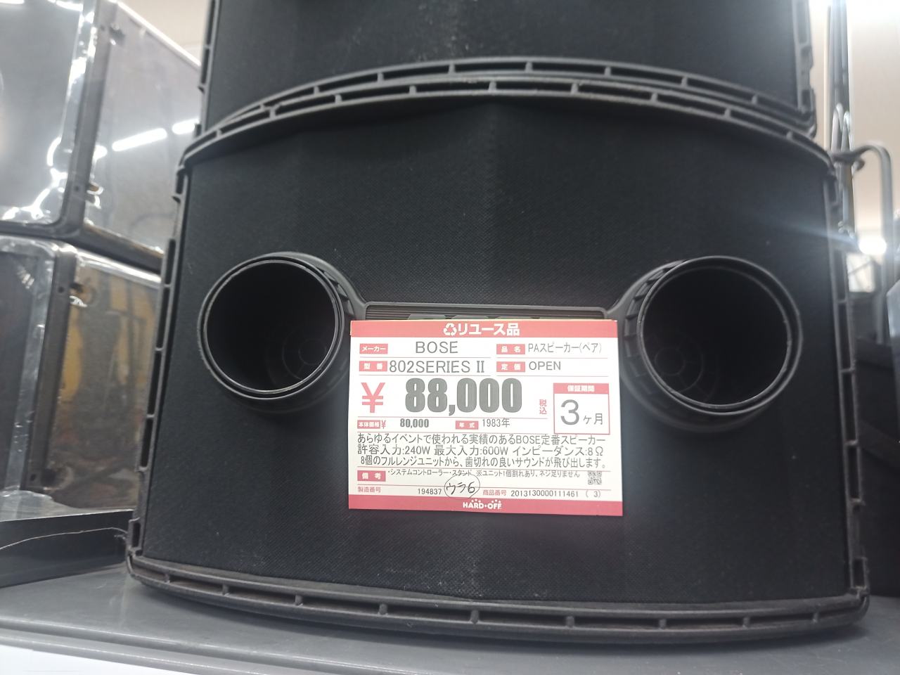 けっこうなお値段しますね。BOSE 802 II。昔々、この手の後方反射が多めのレプリカが自作してみたく構想はしましたが、やたら大きくなるし、コストがかかるしで、結局あきらめました。