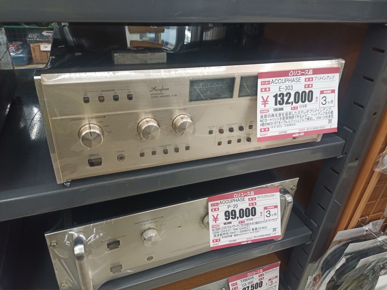 AccuphaseのE-303。これの外観とても好きです。少しレトロでメーター付き。最近のデザインより好き。13,200円なら買ってました。