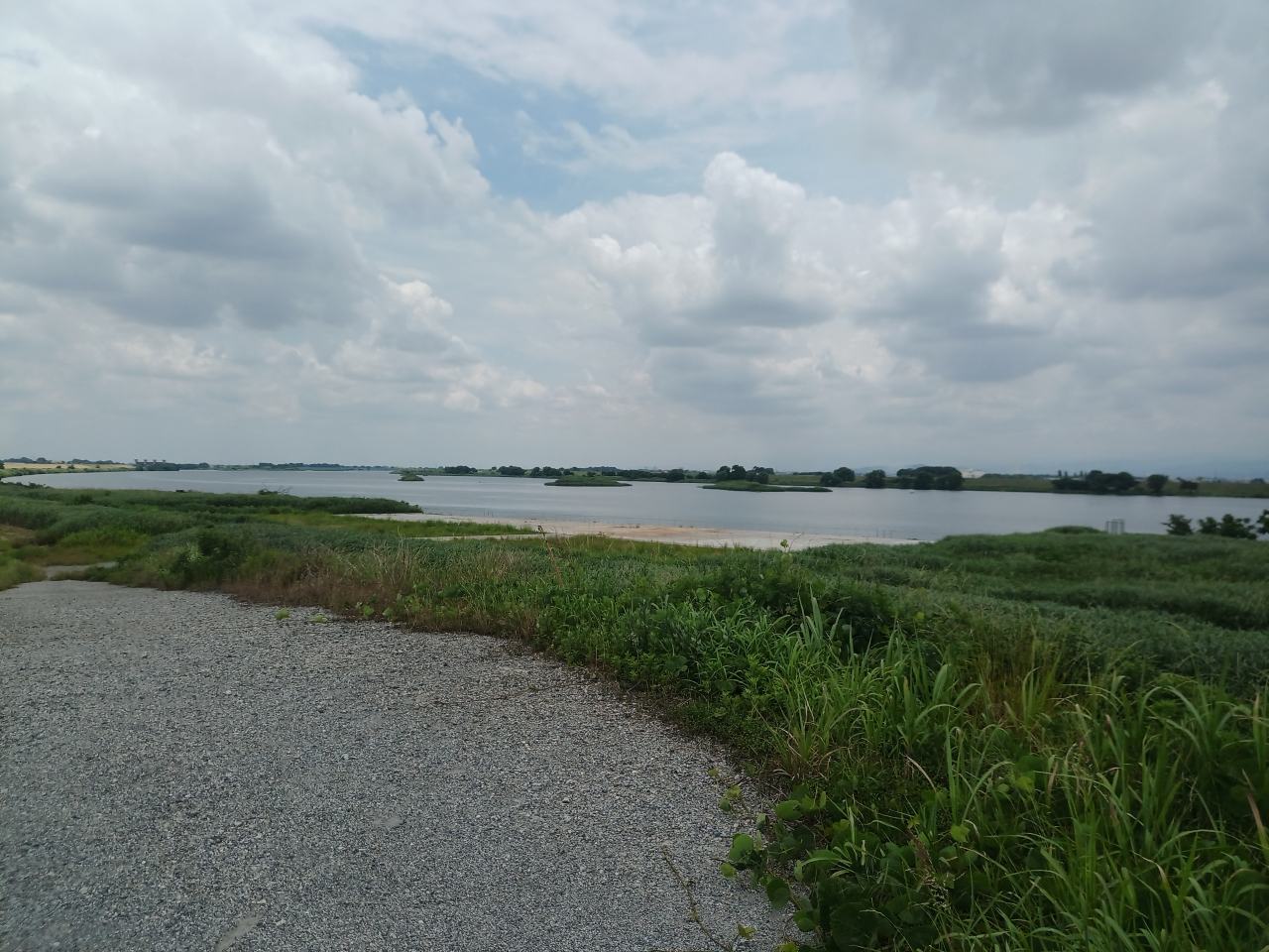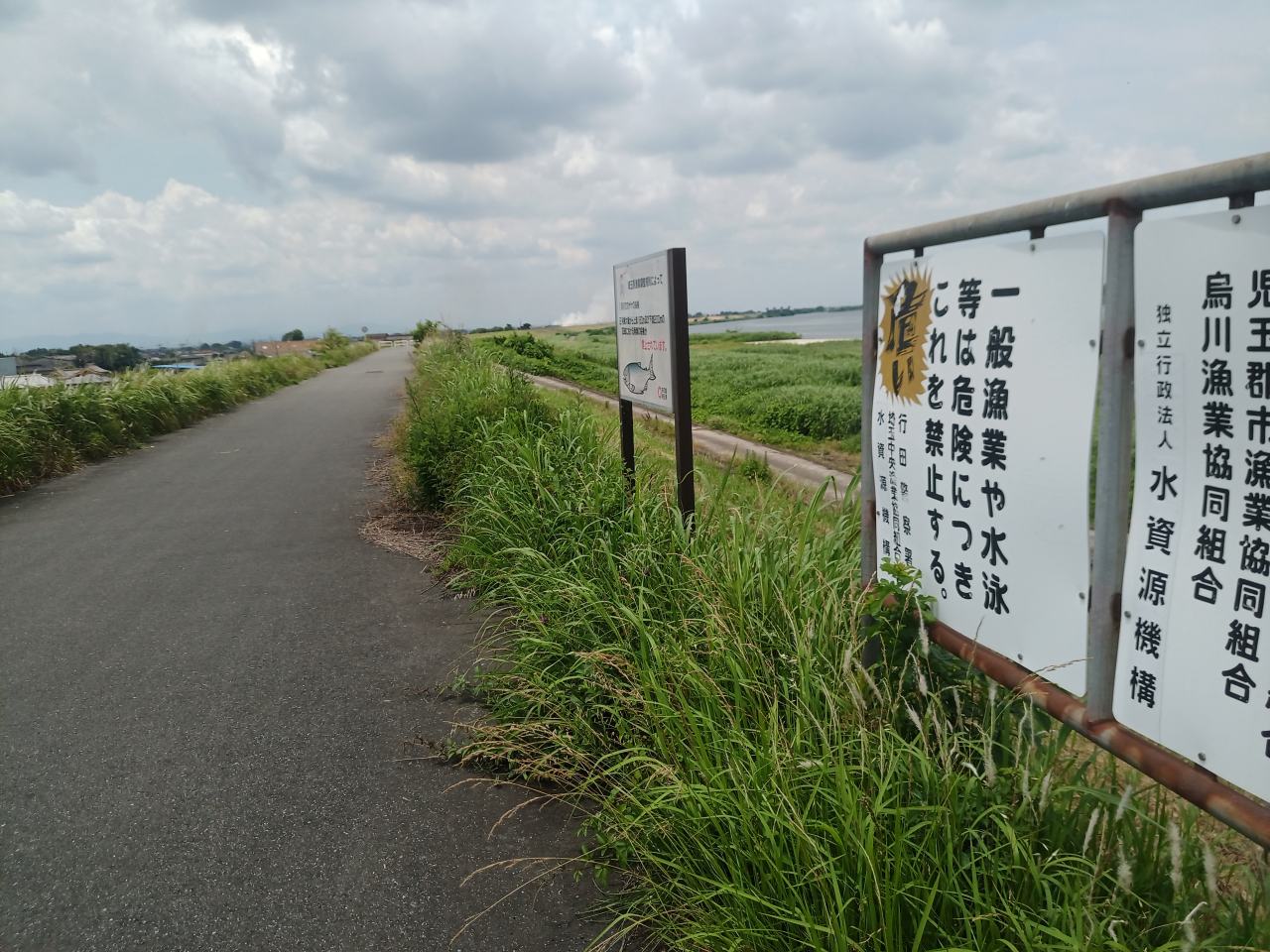 このへんは「利根大堰湖」と名前が付いているとおり、水量が物凄く、川水幅がハンパない。なみなみ、たぷたぷ、そして雄大でした。この雄大感は多摩川とか荒川沿いでは感じないものです。この景色を眺めながら走れるだけでも、来て良かった。