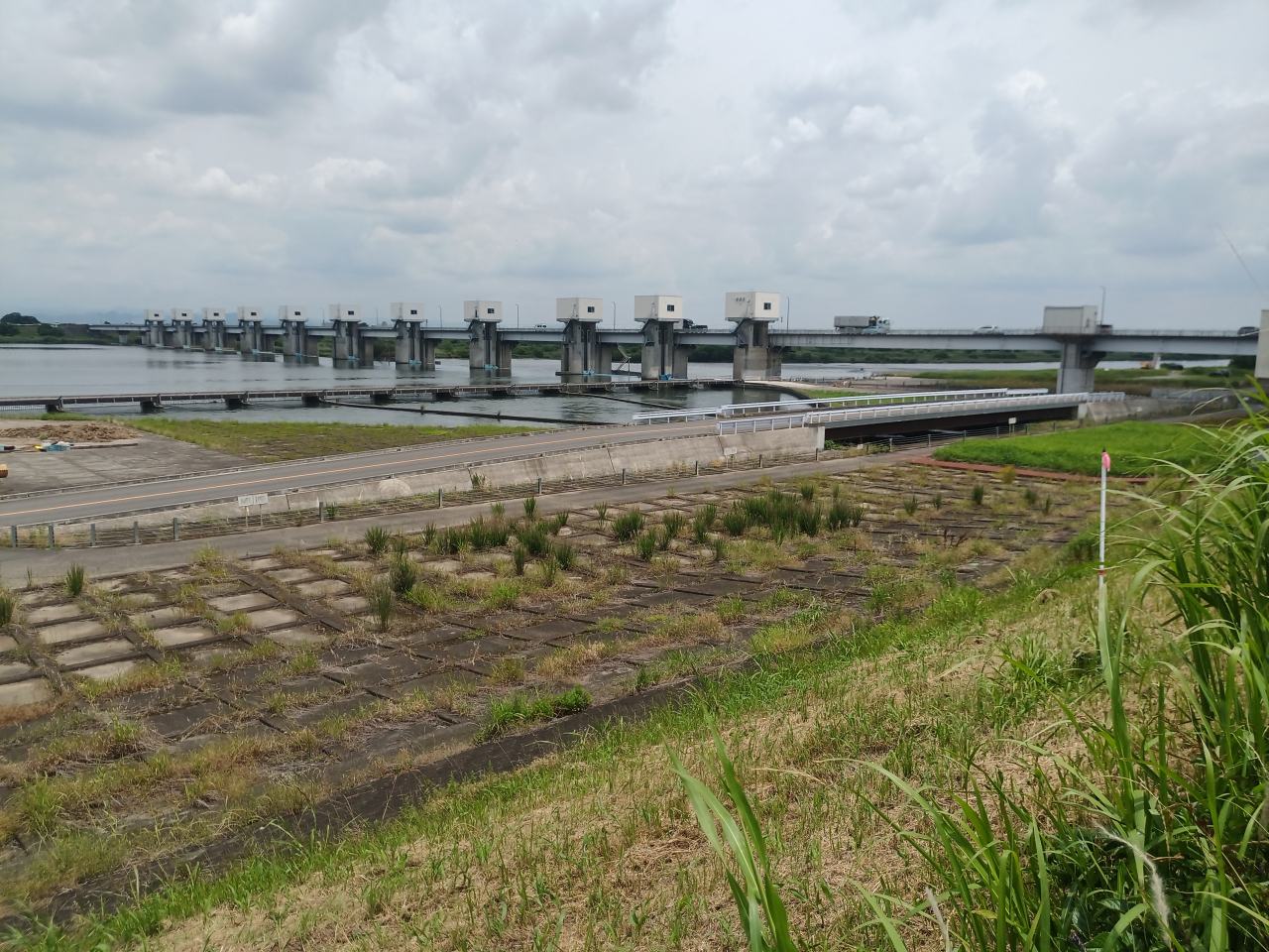 とりあえずの目的地へたどり着きました。利根大堰です。