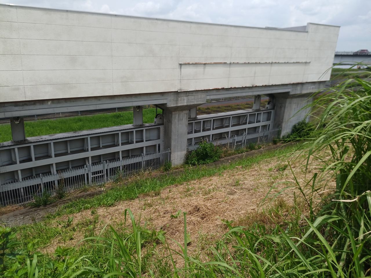 福川の取水口である、福川水門もど迫力でした。造作が巨大。。。距離感を見誤るほどで、走っても走っても近づかないぞ。