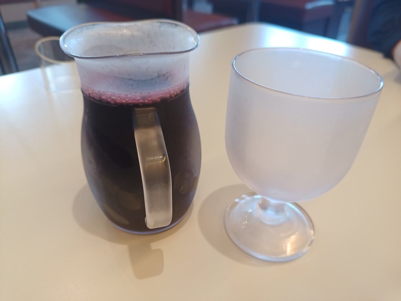 サイゼリアで少し早い夕食には、ラム肉とデカンタワインを奢ってもらいました(かみさんに)