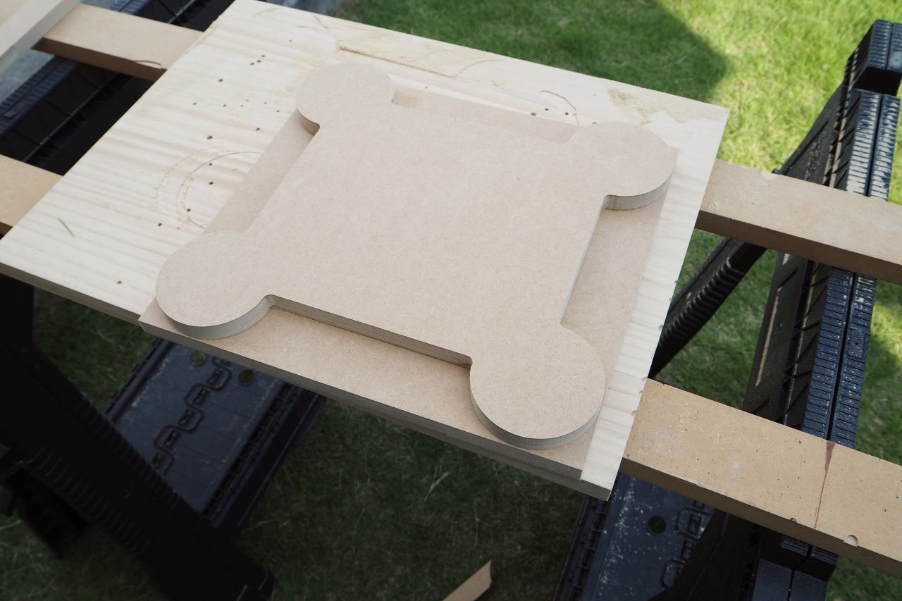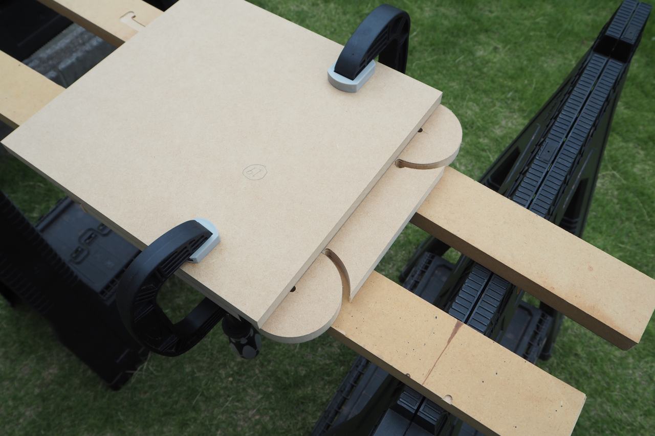 ただひとつ、課題が。クランピングです。切り出すたびにクランパーを動かしていくと、輪郭が微妙にズレていってしまい、2枚の形状が合わなくなってしまいます。