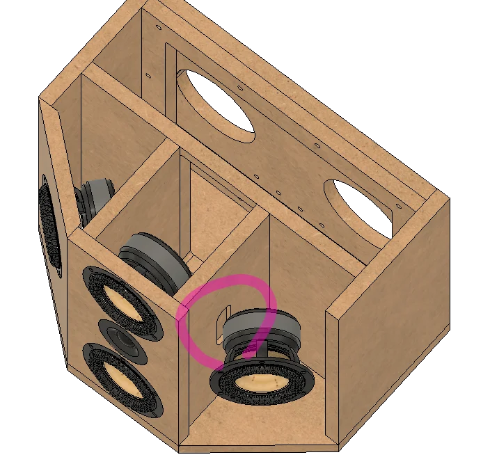 実は、W3-2141のフェライトマグネットが巨大なので、仕切り板に干渉するのです。