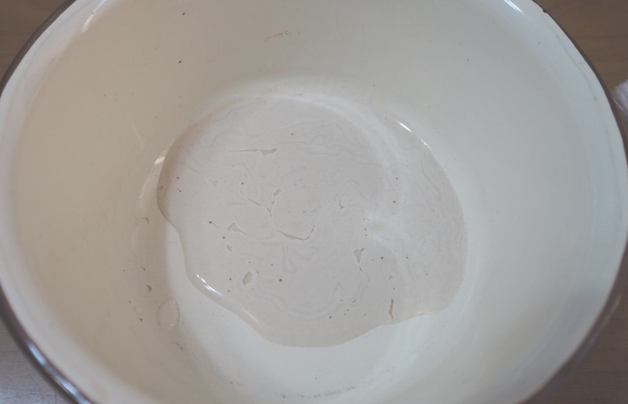 総量10%程度でしょうか。水で希釈し、筆で混ぜてなじませます。