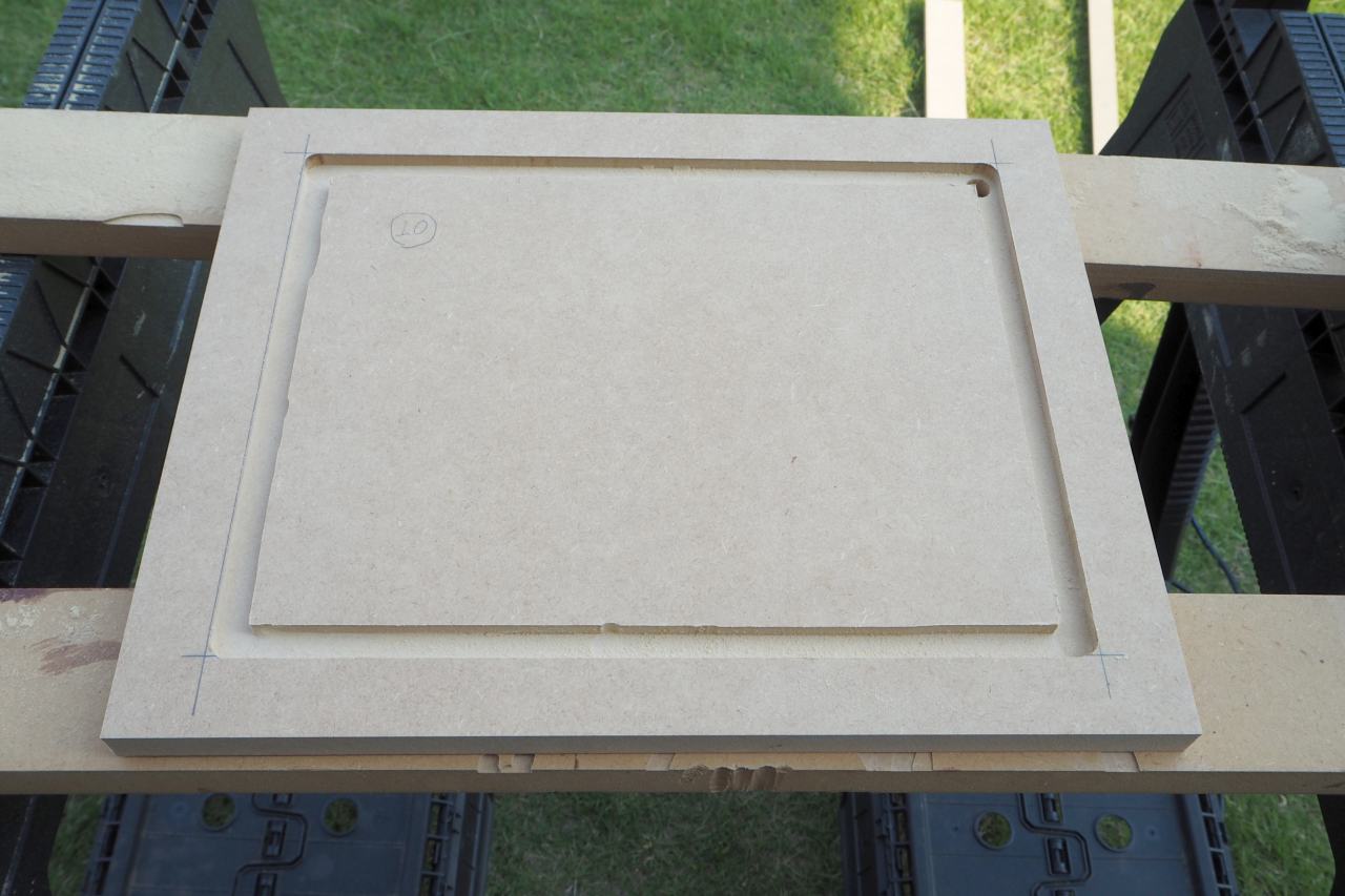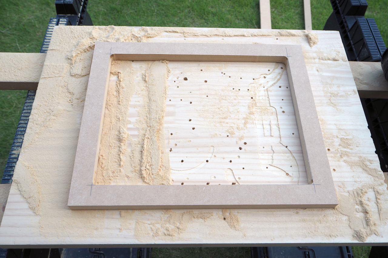 四辺、掘れました。意外とカンタン。ここまで来れば、ジグ不要ですから溝に沿って溝を深くするだけです。