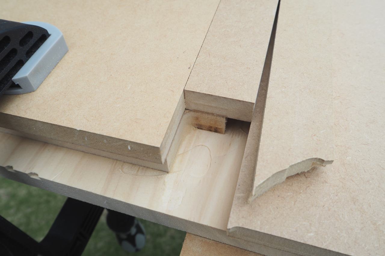 端材をいくつか寄せ集めて、ガイドを作って4回くらいで削り取ります。楽ちんです。