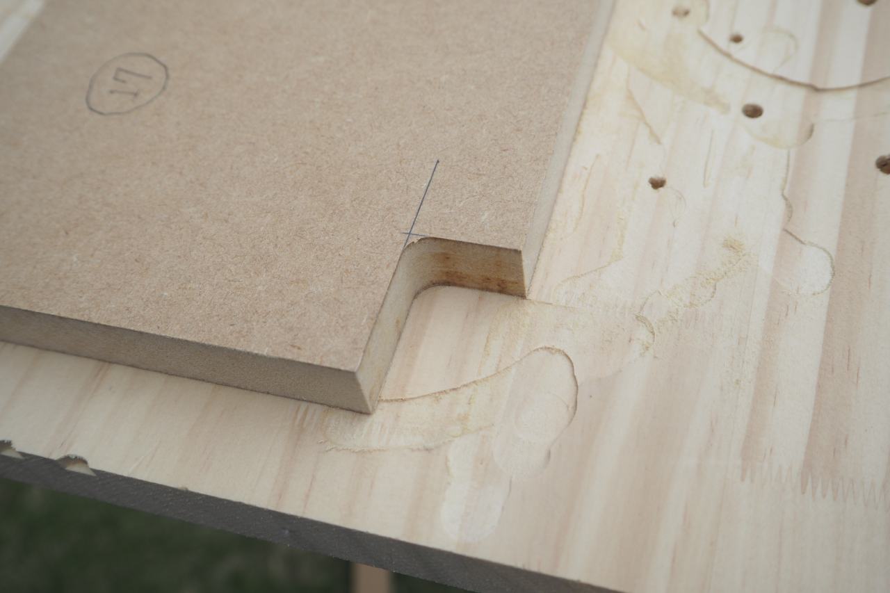 これで終わりでもいいんですが、少しそっけない外観なので、斜めの面取りをしてルックスの向上を試みます。