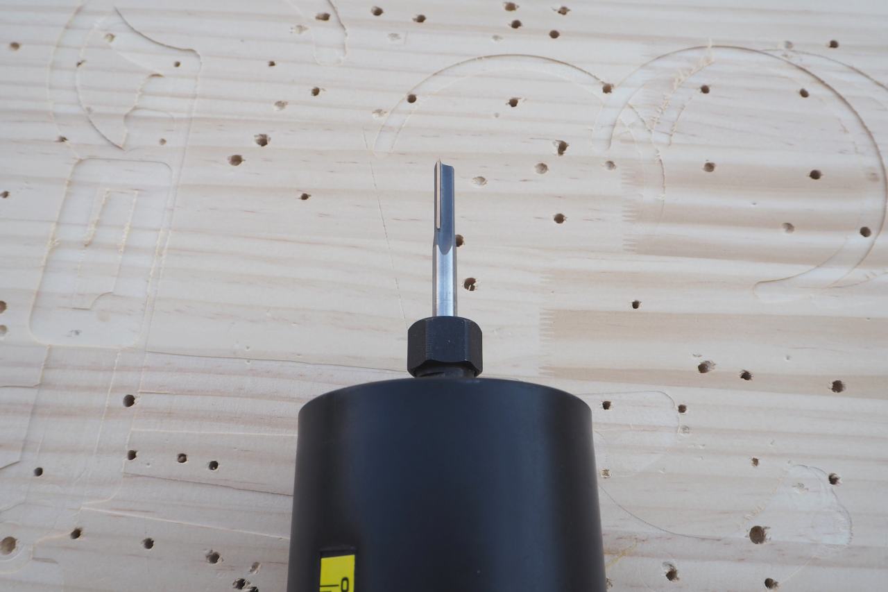 取付時に気づきました。傾斜ベースに取り付けるということは、通常よりも刃を突出させないと、削除対象物に刃が届かないのです。いつもより刃を出した状態で装着するのですから、刃のフレ(軸の歪み)に弱くなります。