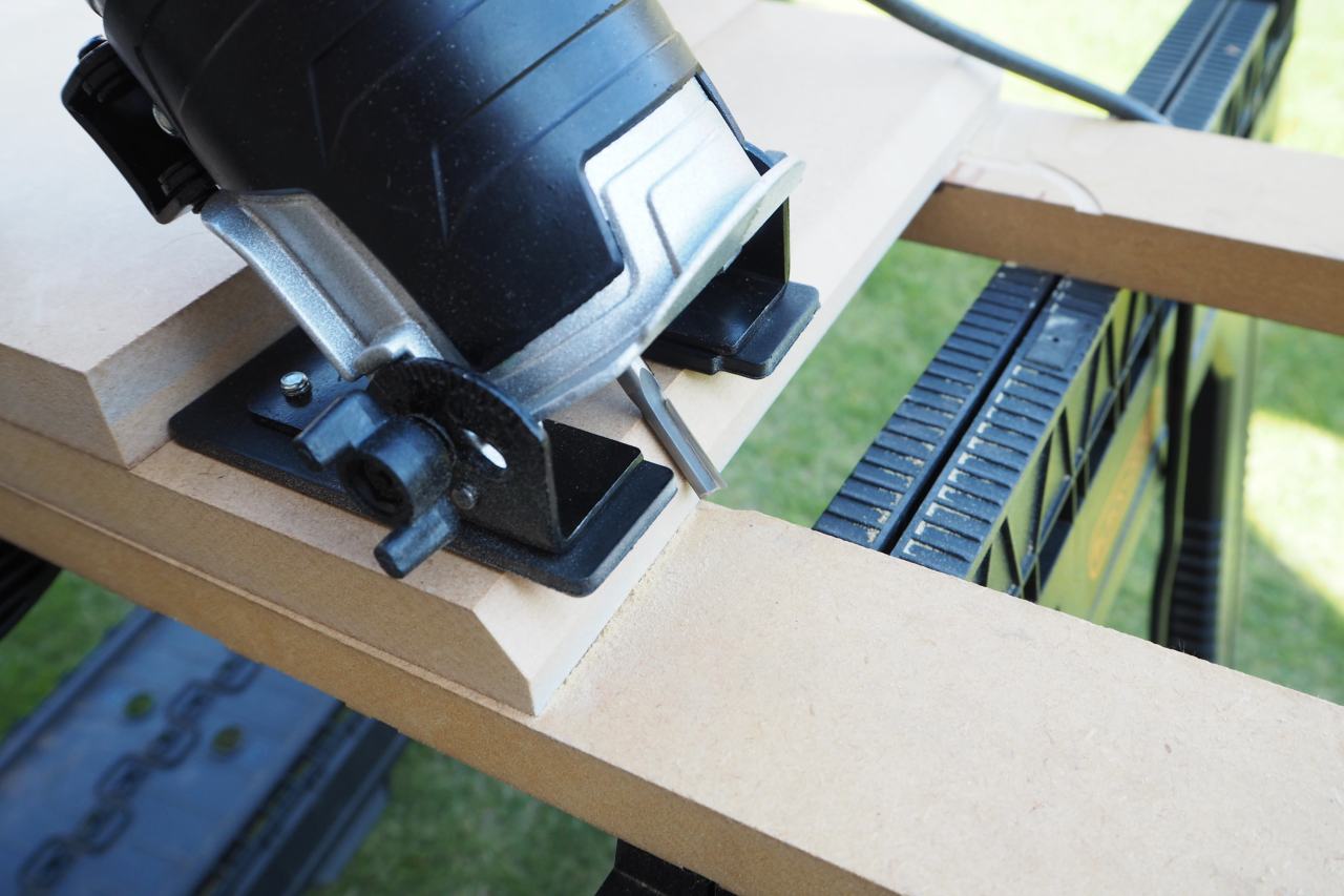 だいぶアホですが、さすがに新しい工具、新しいジグで経験値もなしに本番を施工するほど阿呆でもありません。まずは要らない板でも使って、練習と行きましょう。