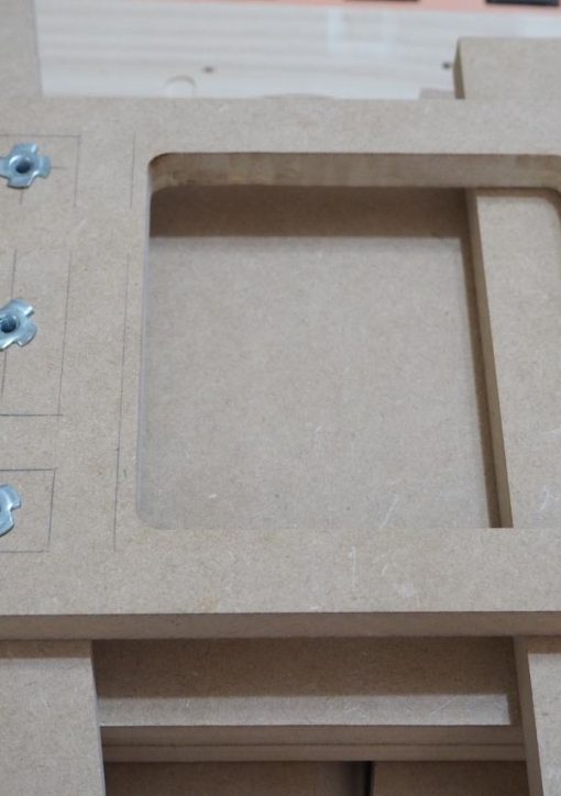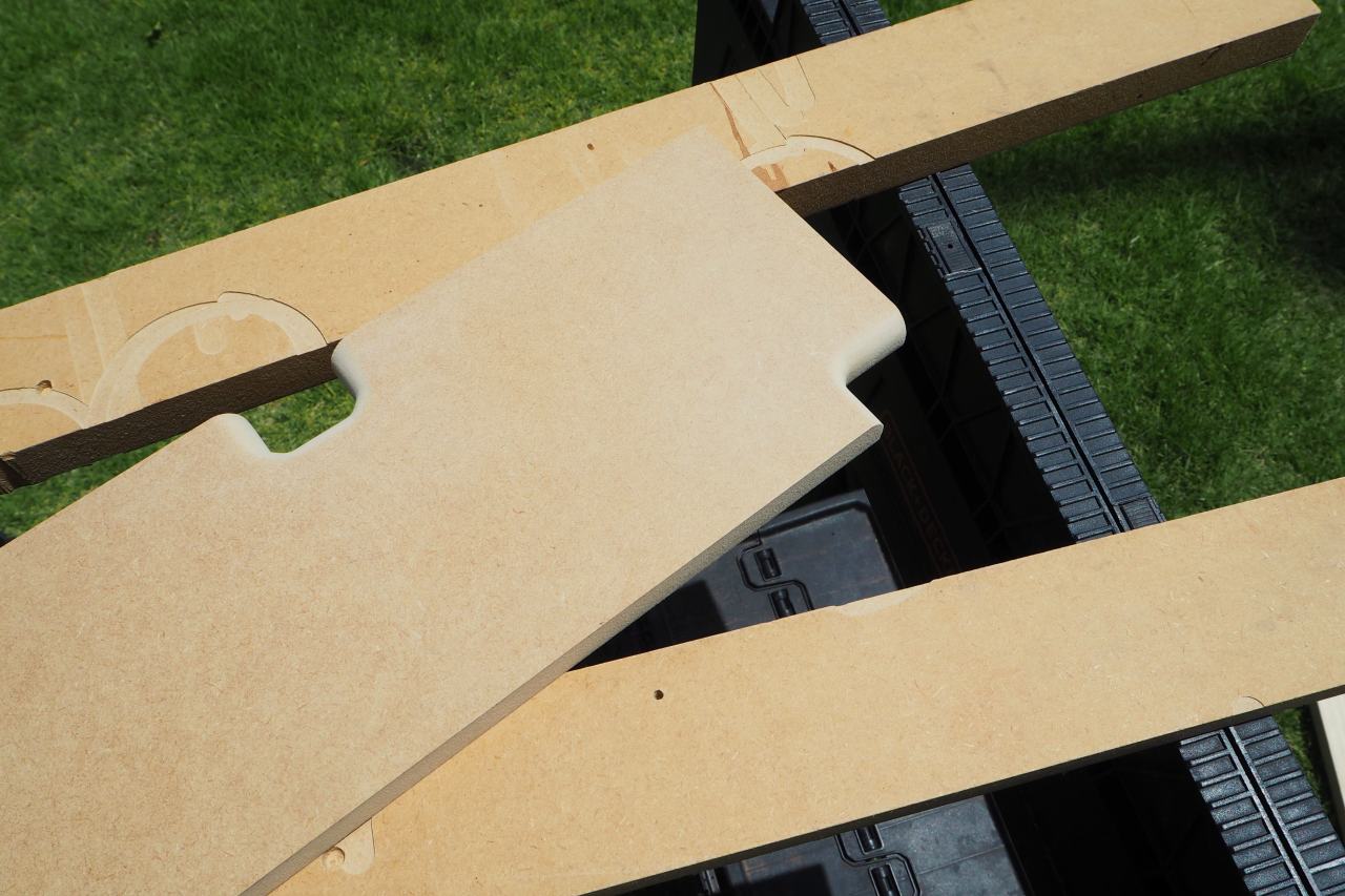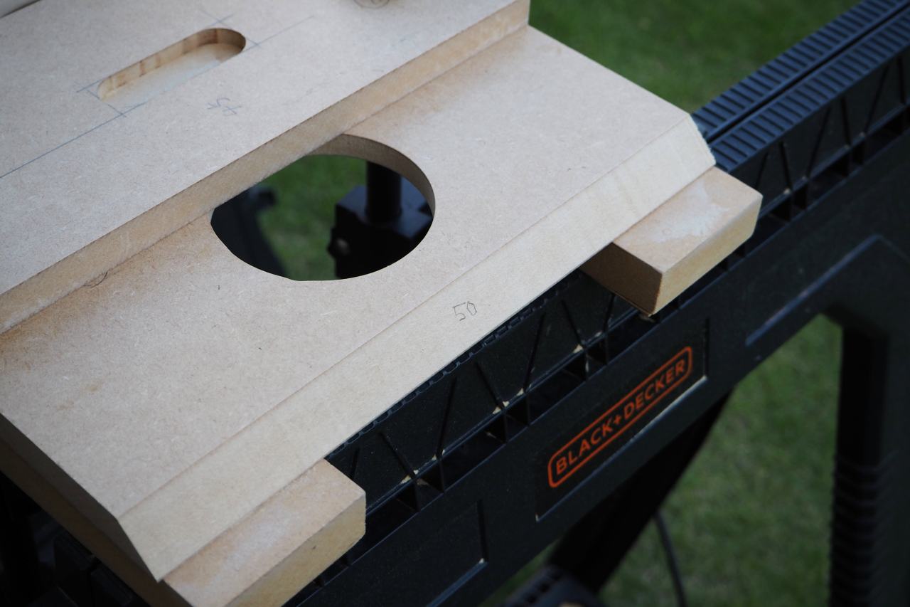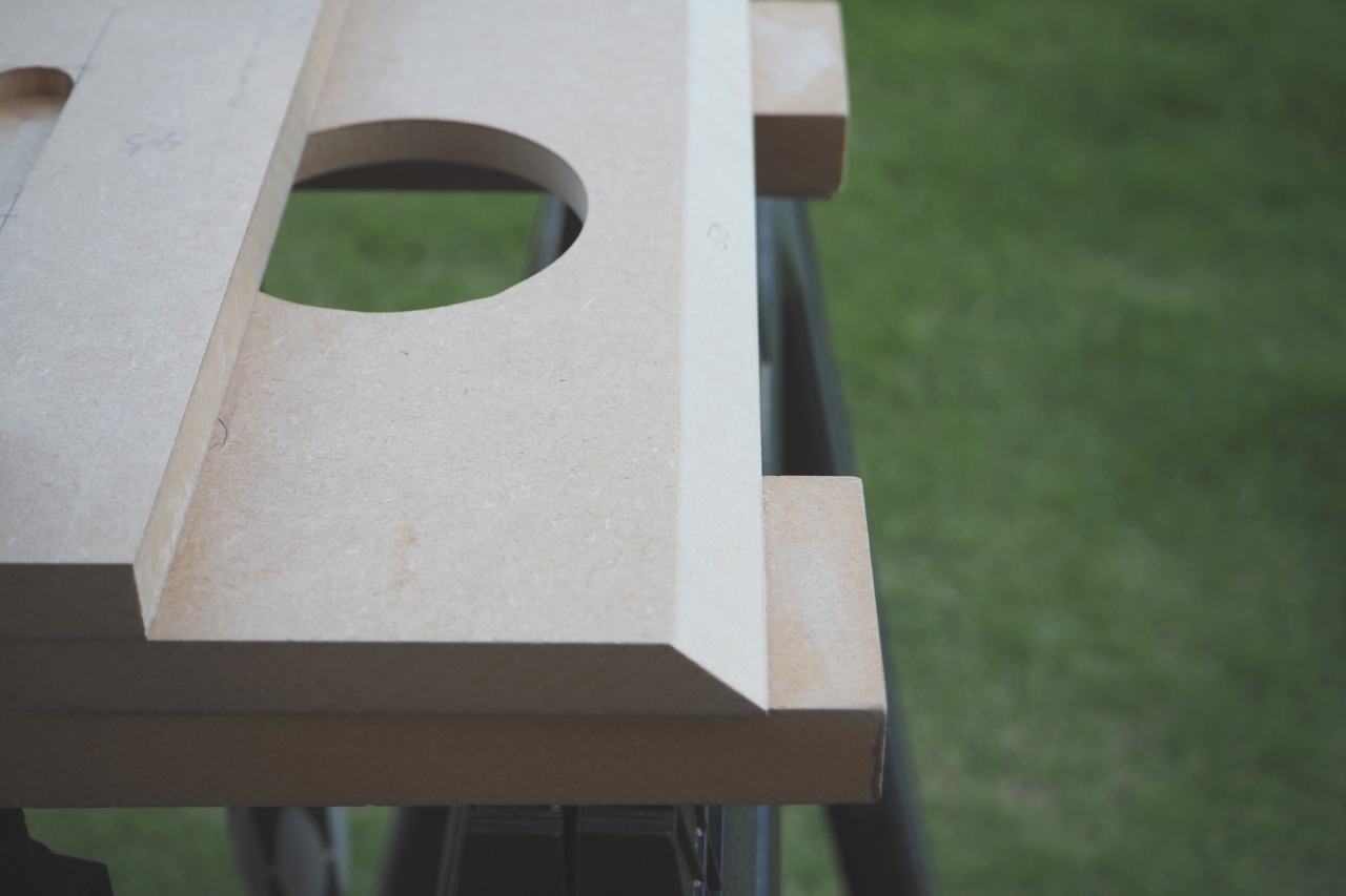 新しいトリマーも入手して、新しい傾斜トリマーベースを使い、45度以外の不定斜度でバッフルをカッタウェイするという、自身でも新しい試みです。