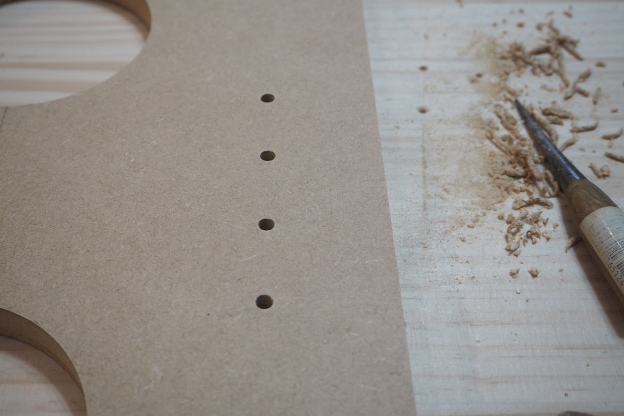後回しにしてきた小孔をドリルで開けてゆきます。