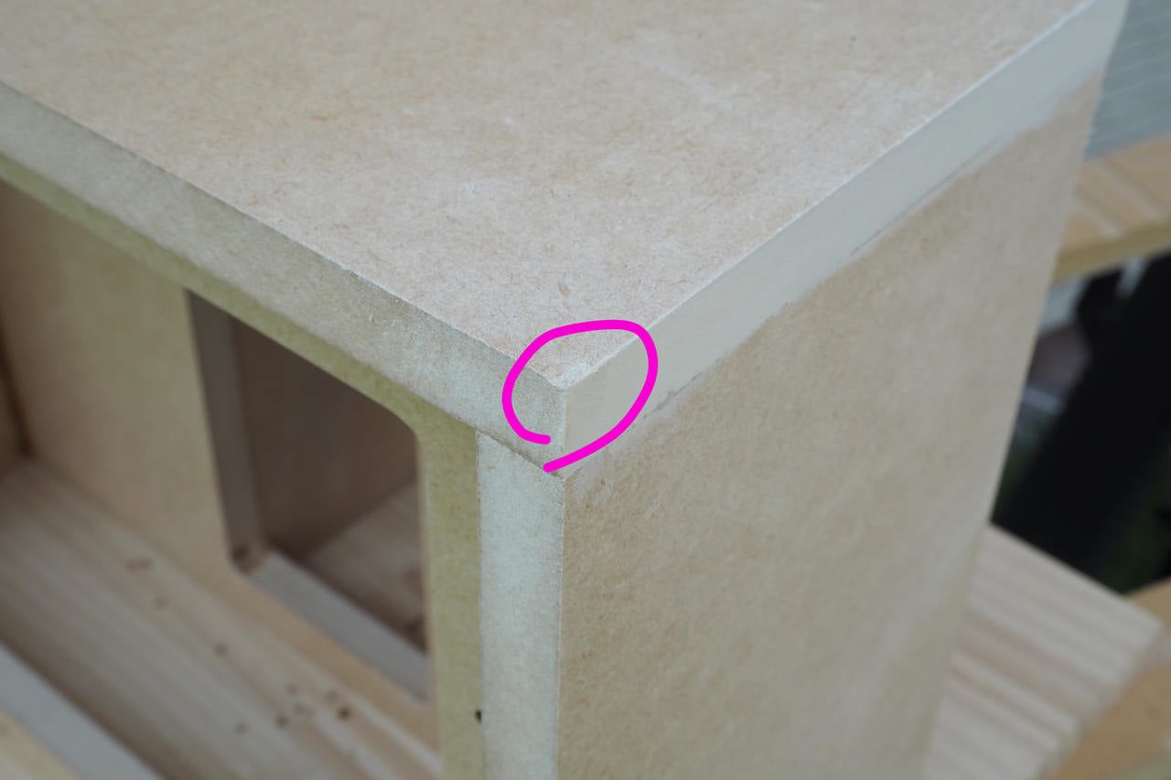 組み立て判明、MDF角っこに少し欠け。