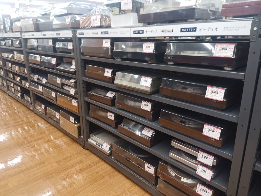 ここのアナログプレーヤー棚は関東圏でもかなり見どころです。凄い品数。といっても、置いてあるのは昭和のTRIO、DENON、PIONEERがメインですが。中古アナログプレイヤー領域において、DENON強し。シェアが高かったのか、耐用年数が高いのか。