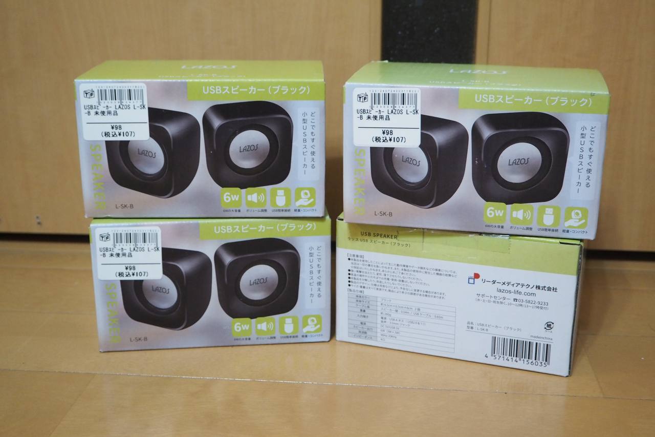 これの類似スピーカーをダイソーで入手すると、トータル660円です。