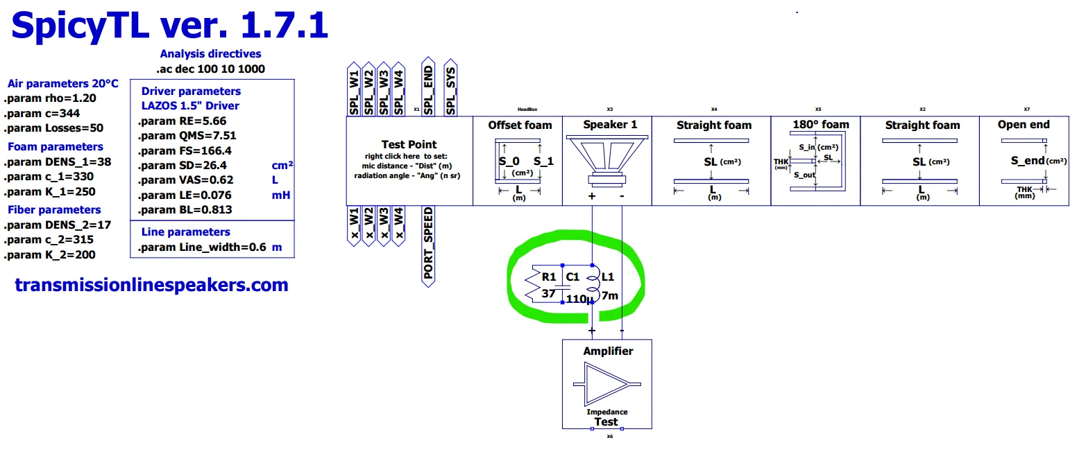 前稿でLAZOSのフルレンジドライバのT/Sパラメータが実測できましたので、それらをSpicyTLのドライバ係数に突っ込んで模擬してみます。