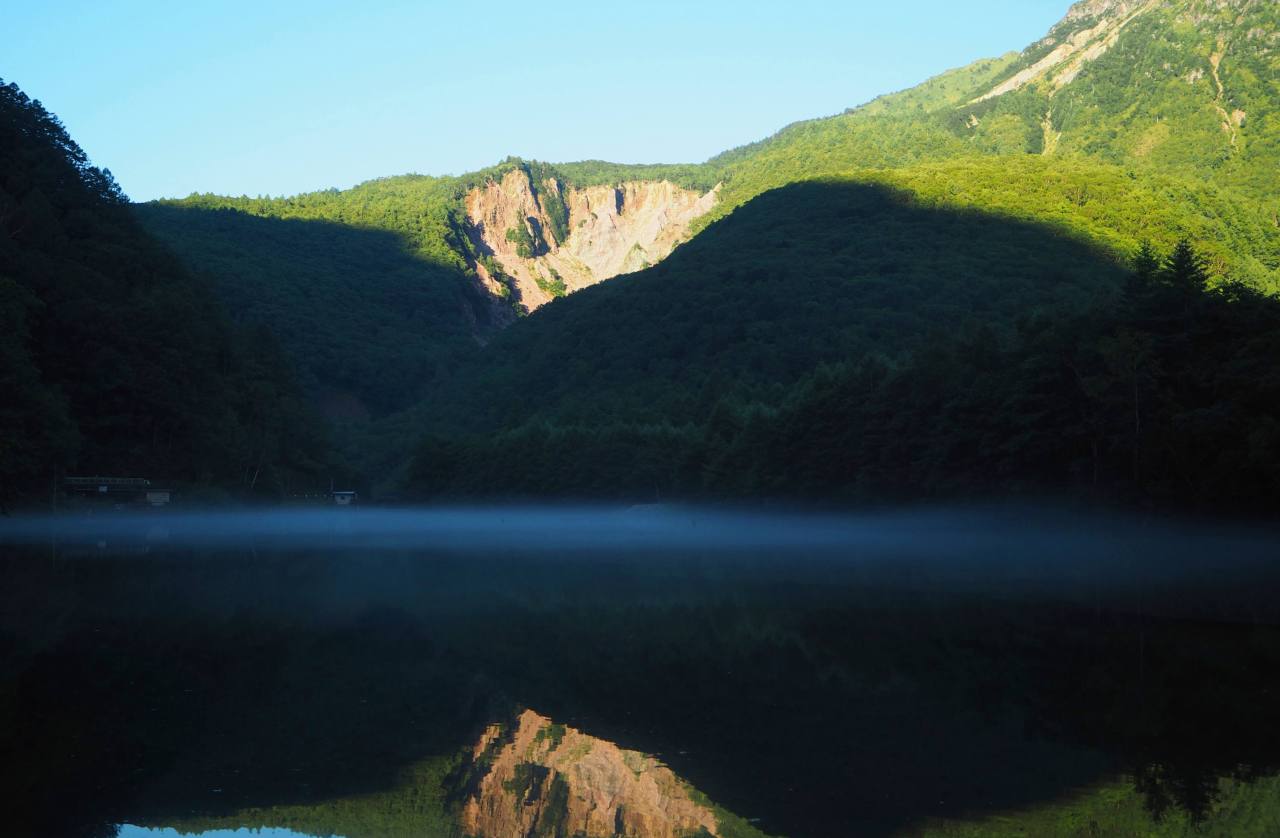 午前6時前後。湖面に朝靄が立っていて一層幻想的です。美しい。