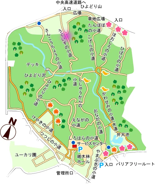 小宮公園は窪地で、窪んだところが湿地帯になっているのでそこへ向かってひたすら下っていきます。