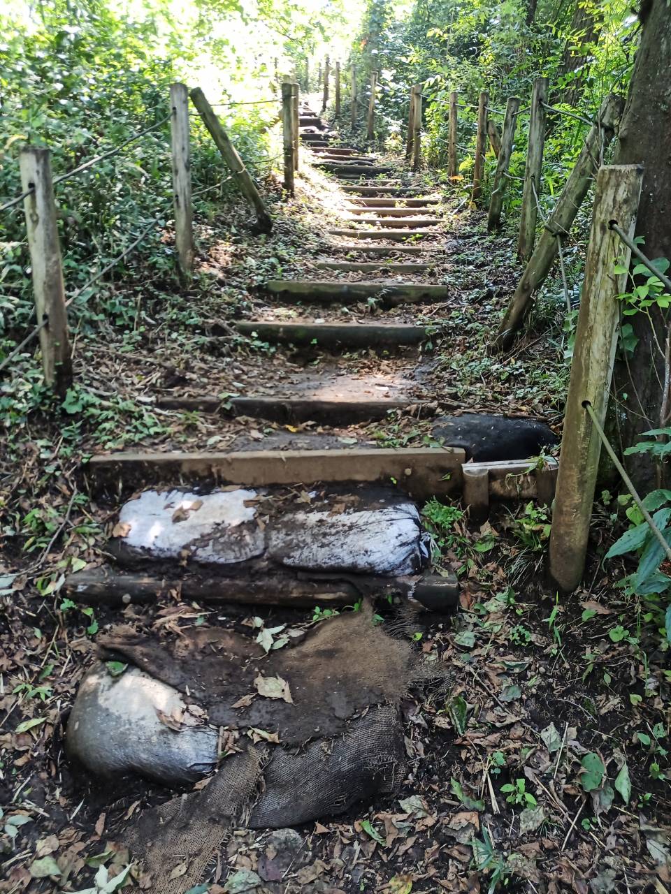 急な階段を降りていきます。(降りるということは最後は上りが待っている)